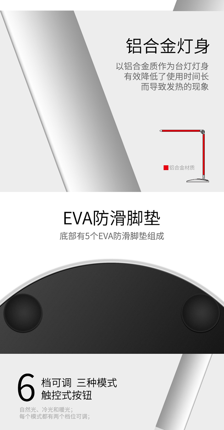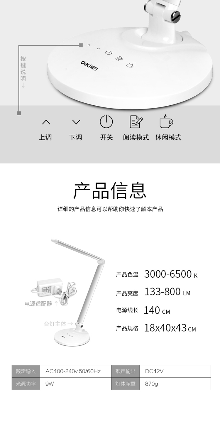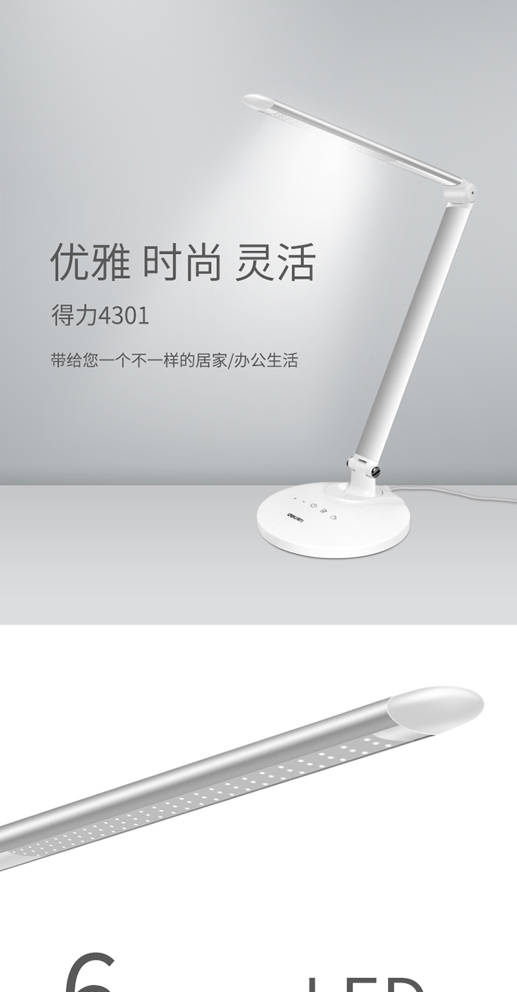 得力4301_LED觸控臺(銀色)六檔可調適配器DC12V 1A