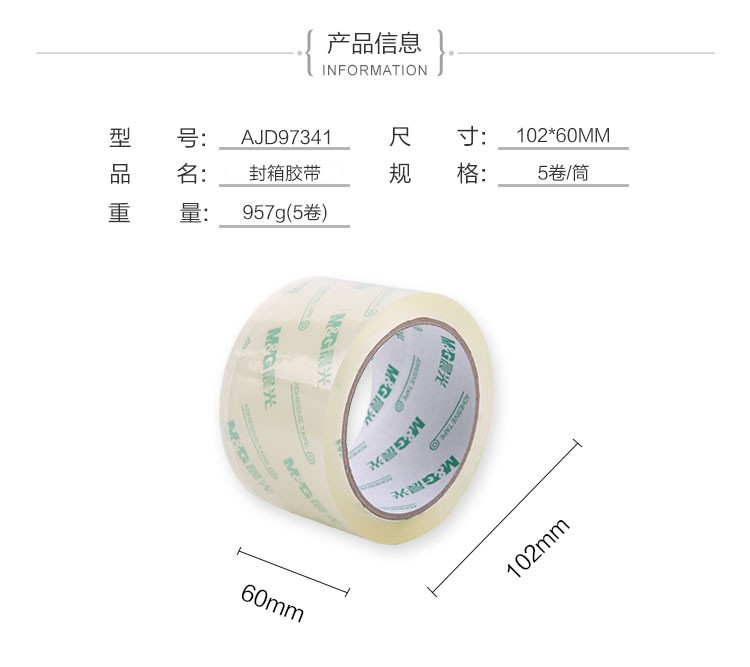 晨光普惠高透封箱膠帶60mm*60y*5卷AJDN7502