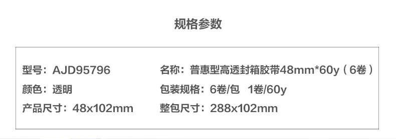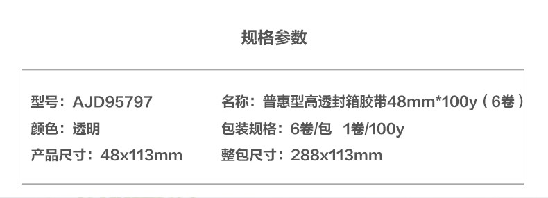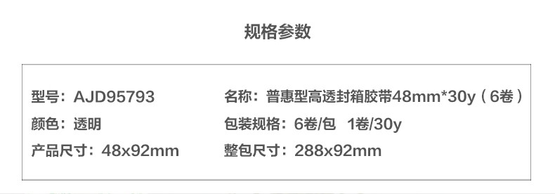 晨光普惠高透封箱膠帶48mm*30y*6卷AJD95793