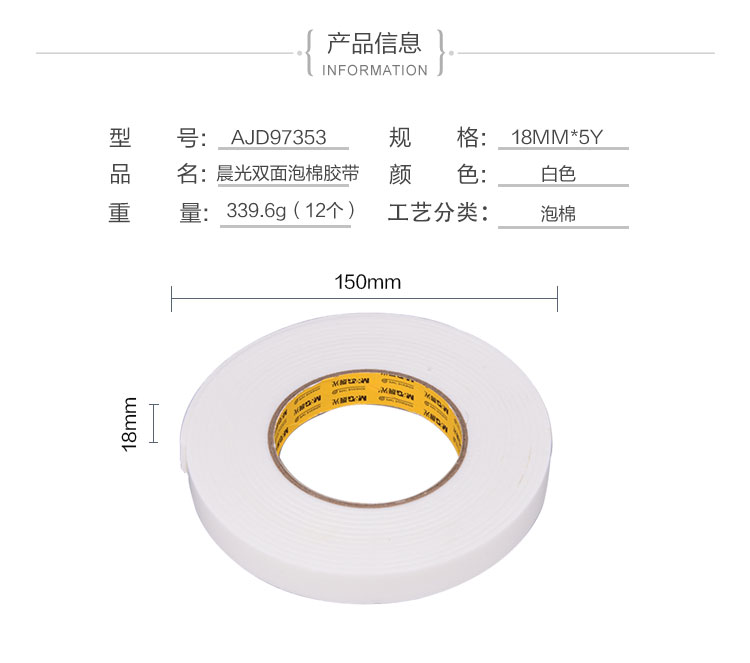 晨光雙面泡棉膠帶18mm*5y(單卷)AJD97353