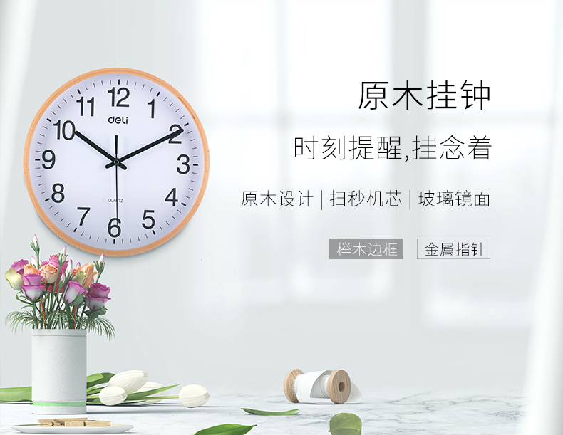 得力9005掛鐘30cm(12寸)