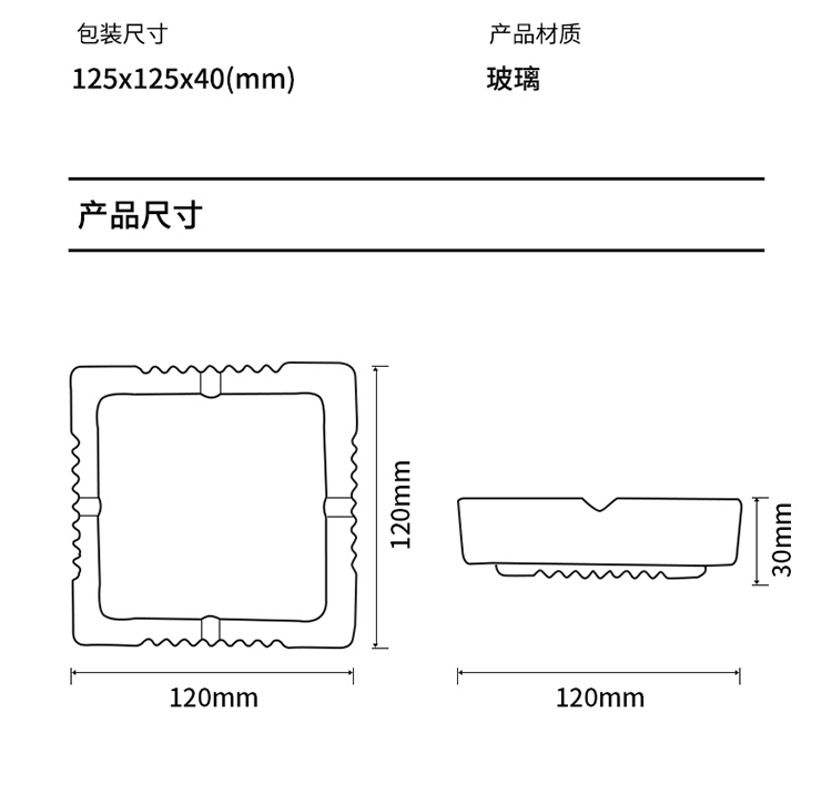 得力9578玻璃煙灰缸(透明)120*120mm