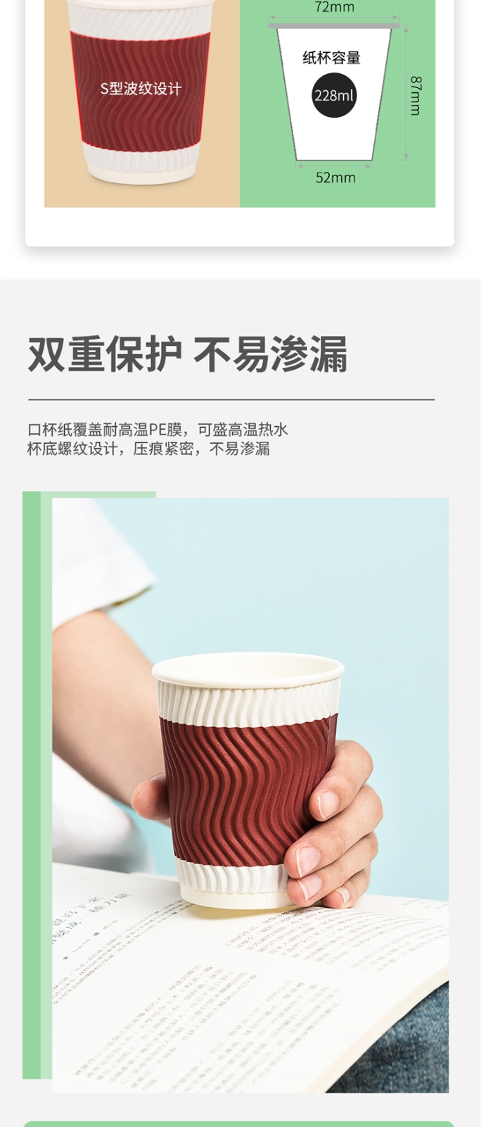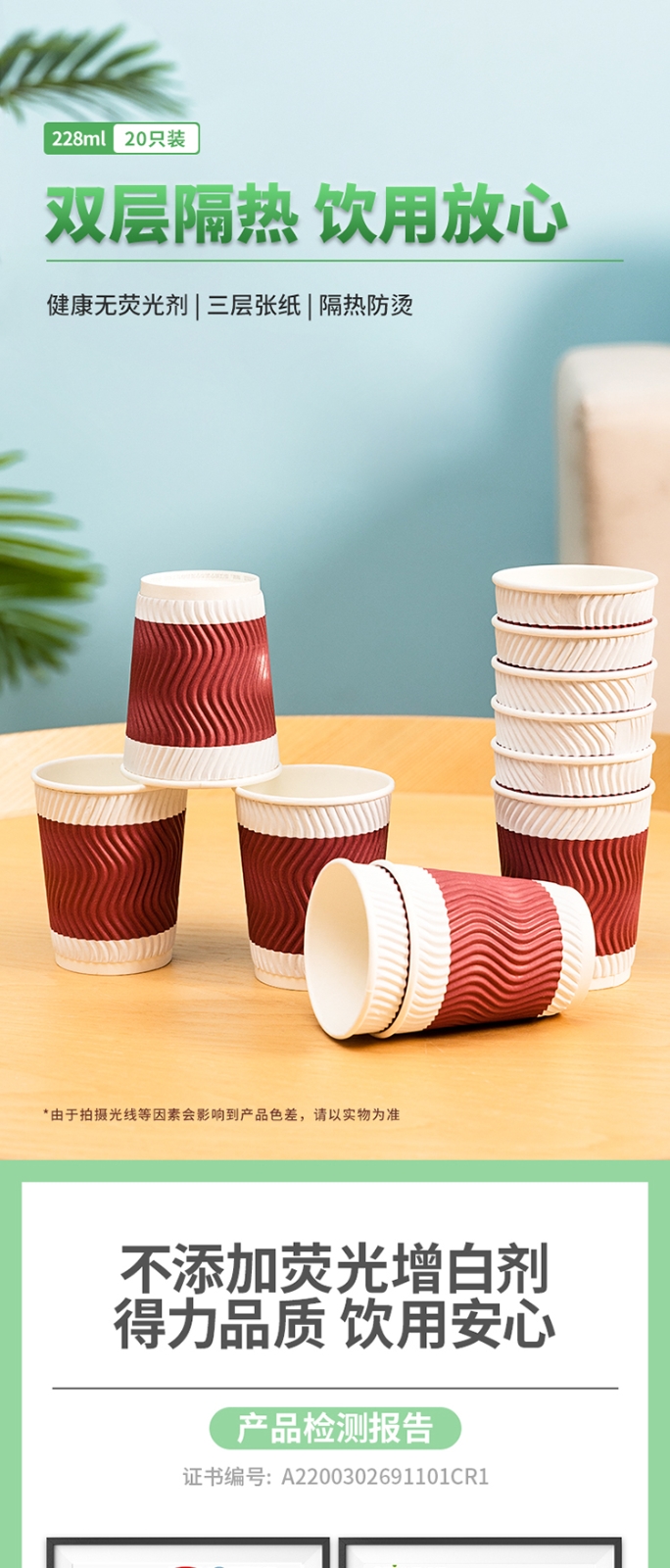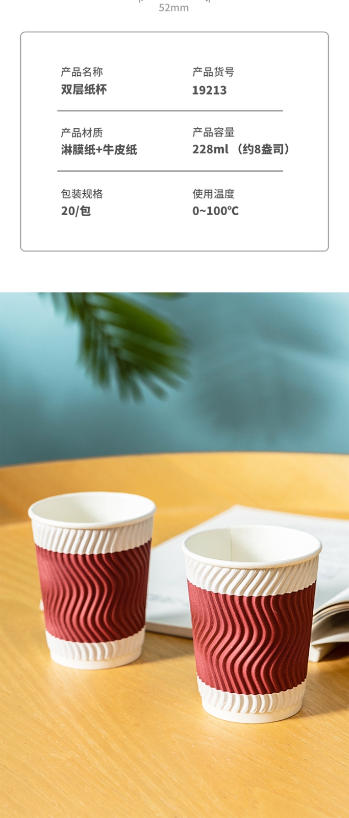 得力19213雙層紙杯(228ml)(木漿紙)(紅色)(20只/袋)