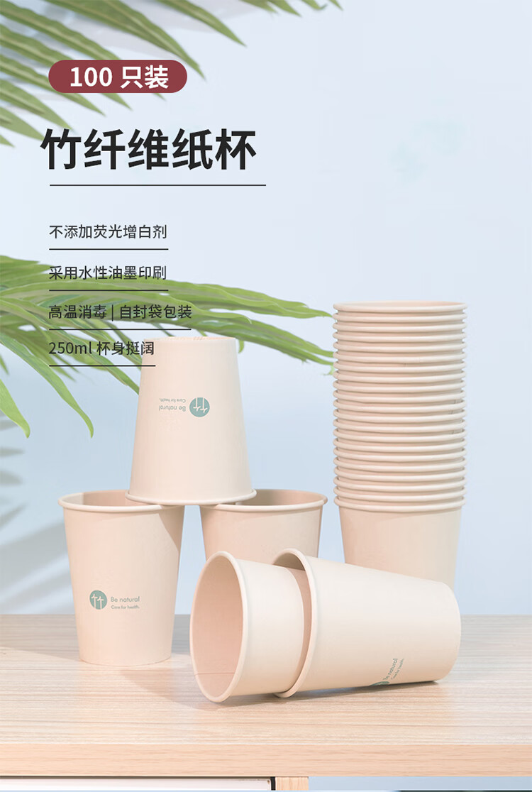 得力19208竹纖維紙杯250ml*100只