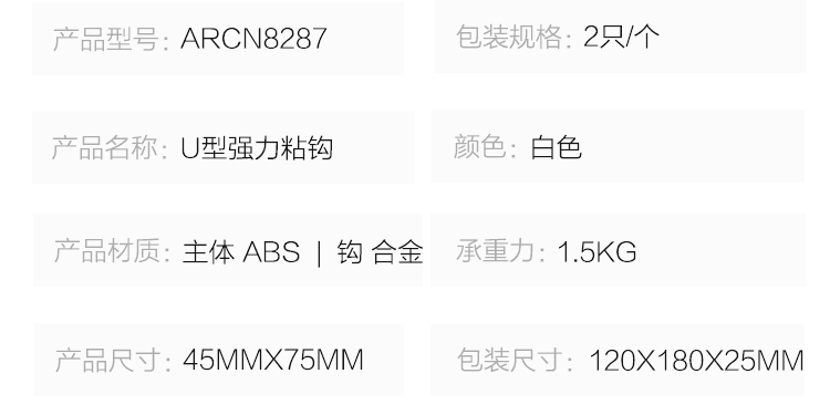 晨光U型強力粘鉤1.5kg(2只裝)ARCN8287