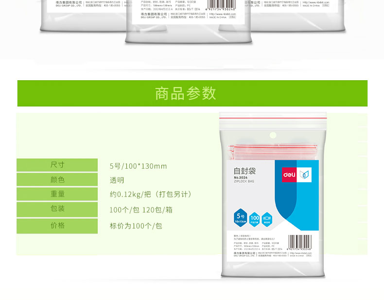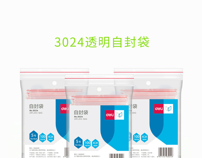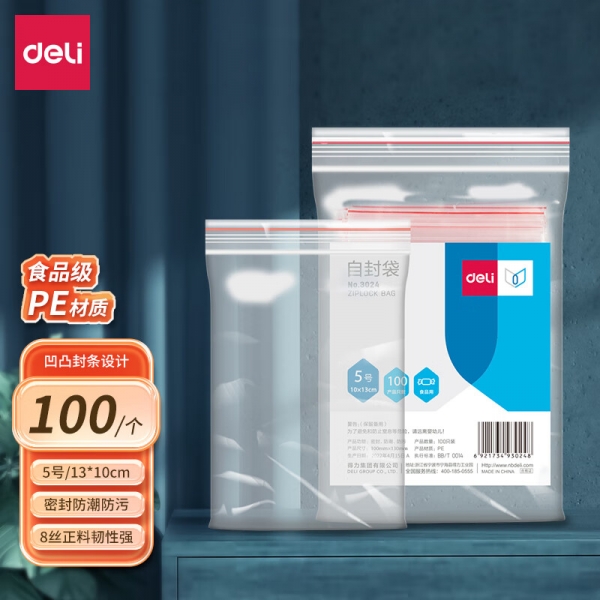 得力3024自封袋5號140*100mm*100pcs
