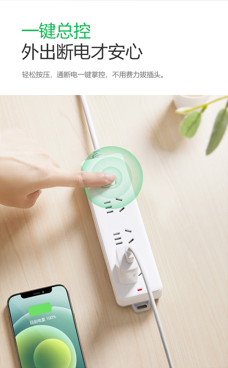 公牛GN-212插線板 總控3孔1.8米