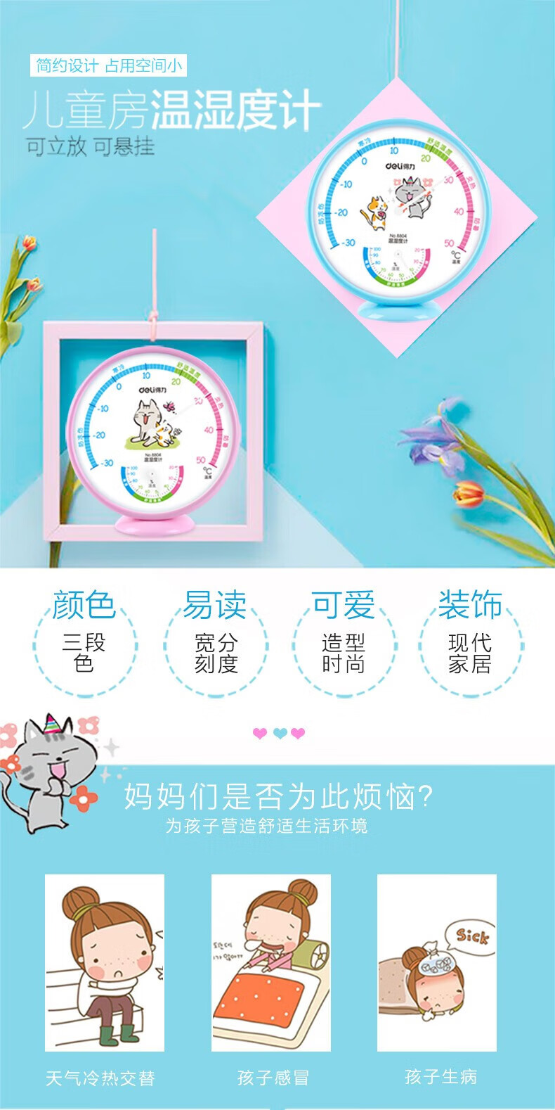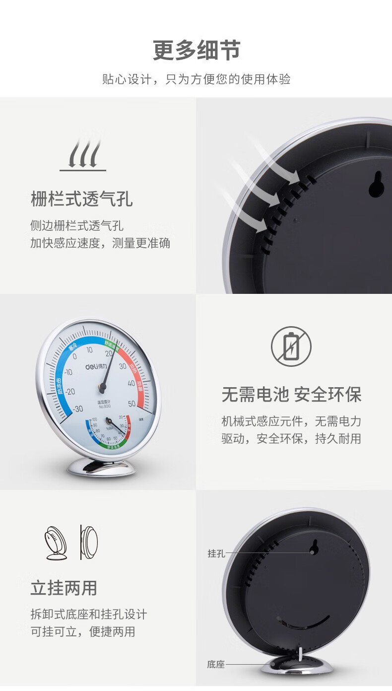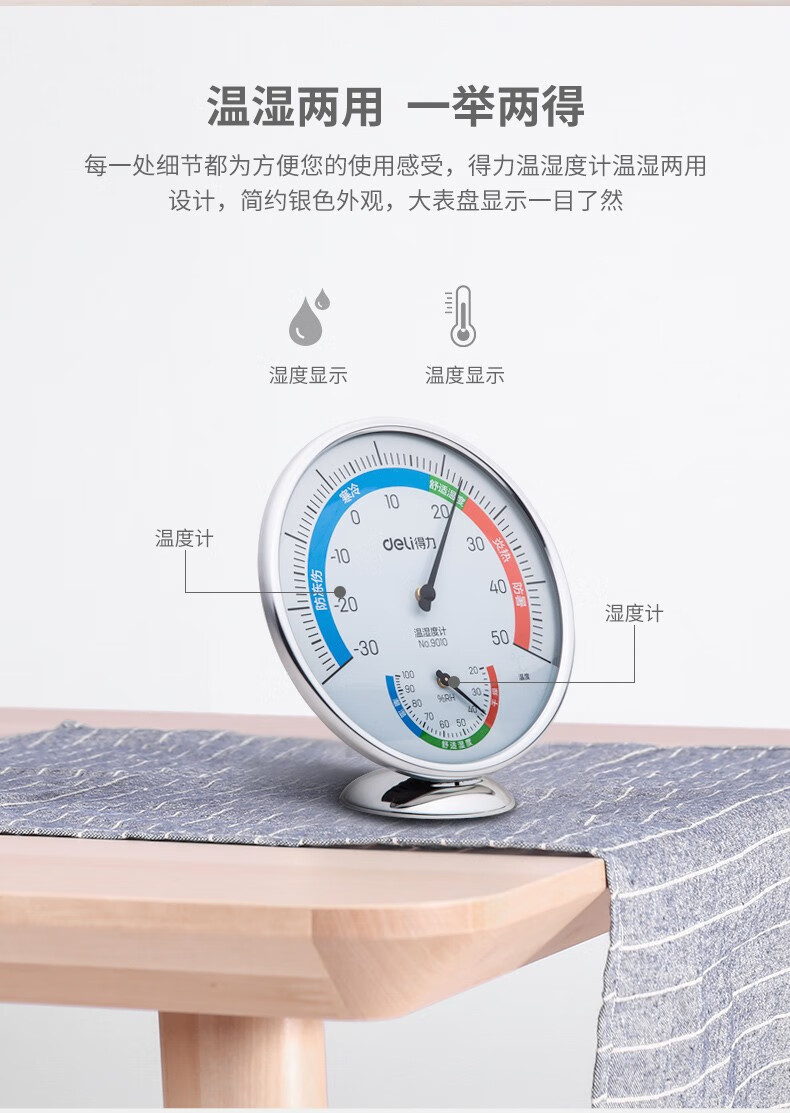 得力9010室內(nèi)溫濕度計(銀色)