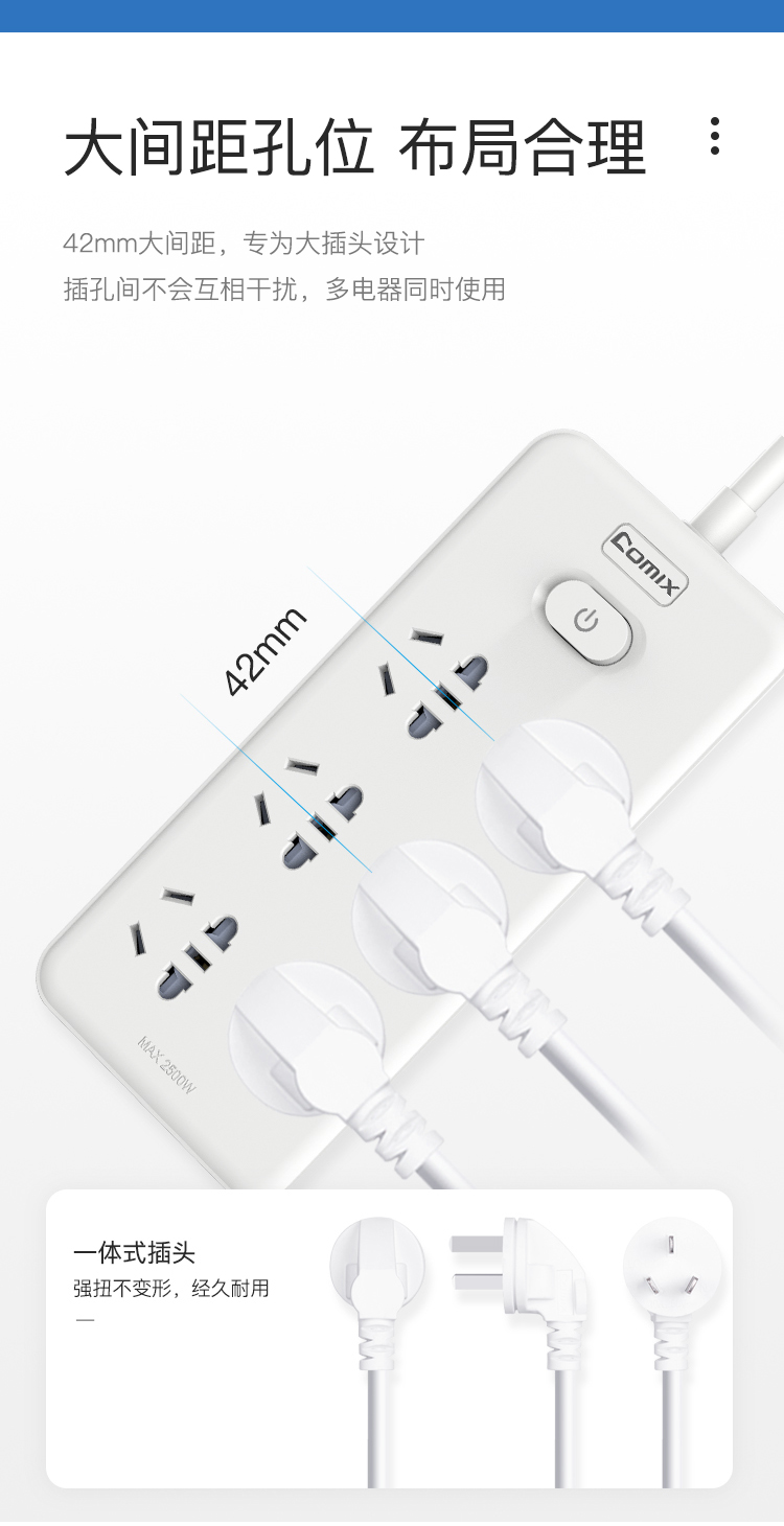 齊心PCP-WZ618插線板 6位30孔2米