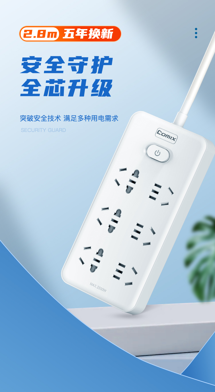 齊心PCP-WZ618插線板 6位30孔2米