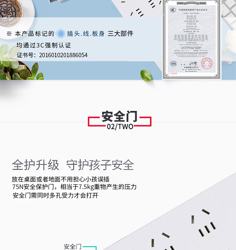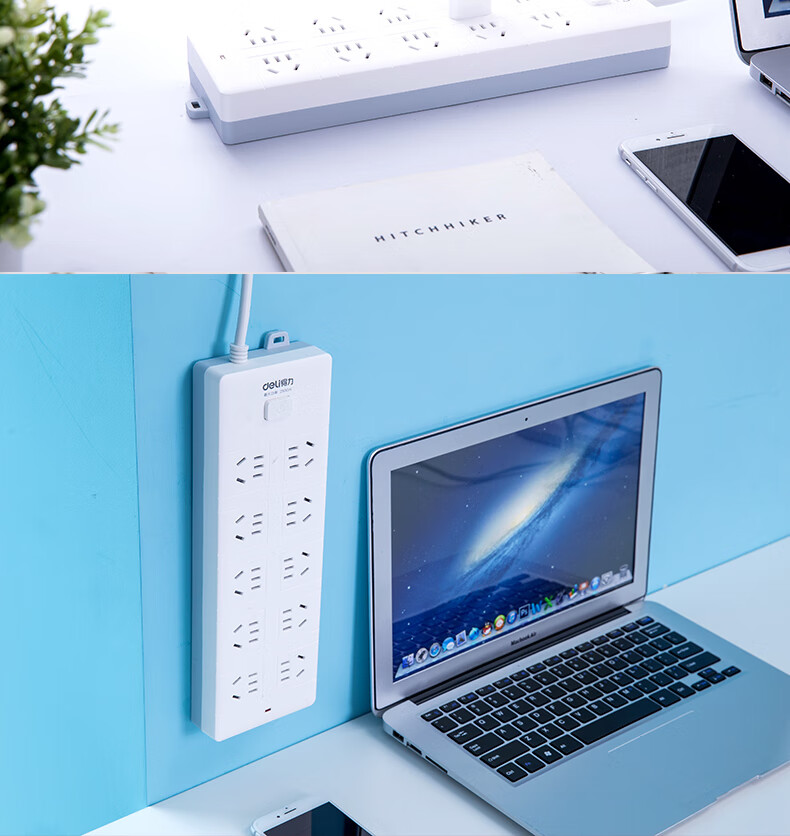得力18275(02)插座_10組_2米_PVC袋裝(白)
