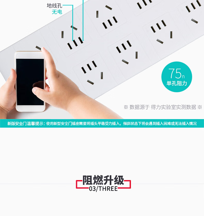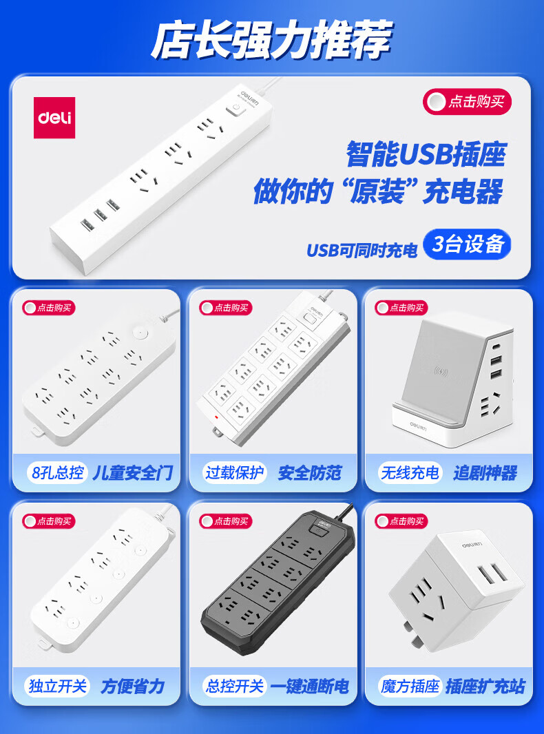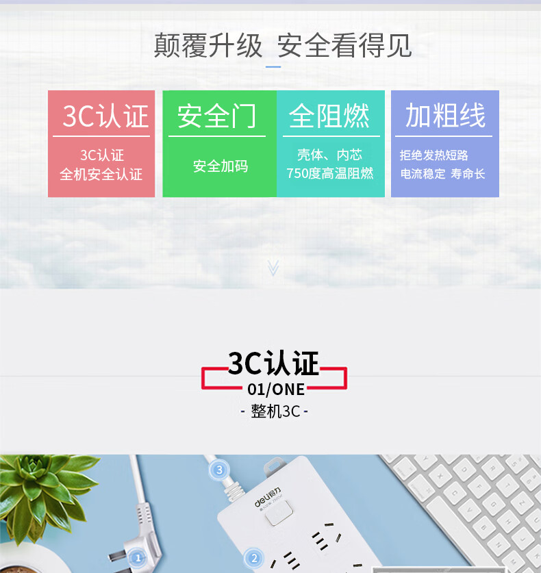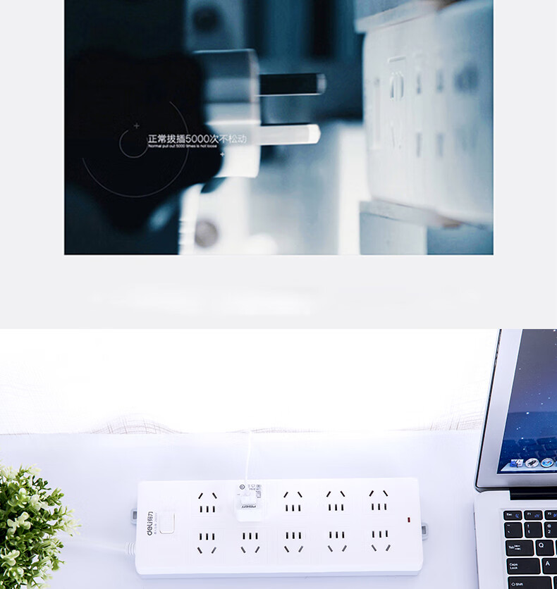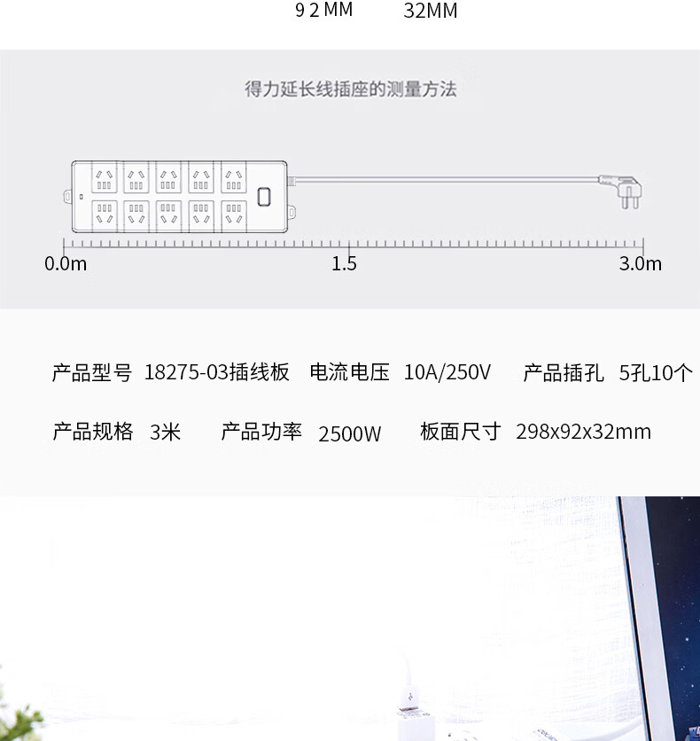 得力18275-03插座10組/3米PVC袋裝(白)