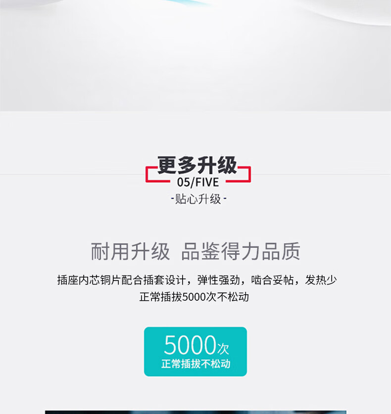 得力18275-05插座_10組_5米_PVC袋裝(白)