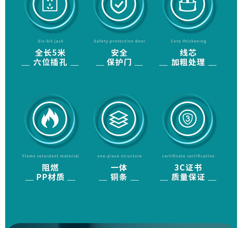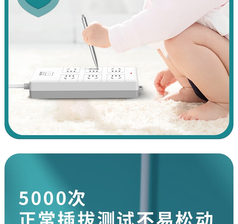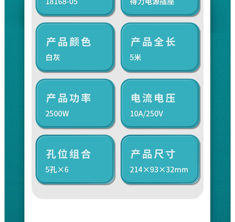 得力18168-05插座_6組_5米_PVC袋裝(白)