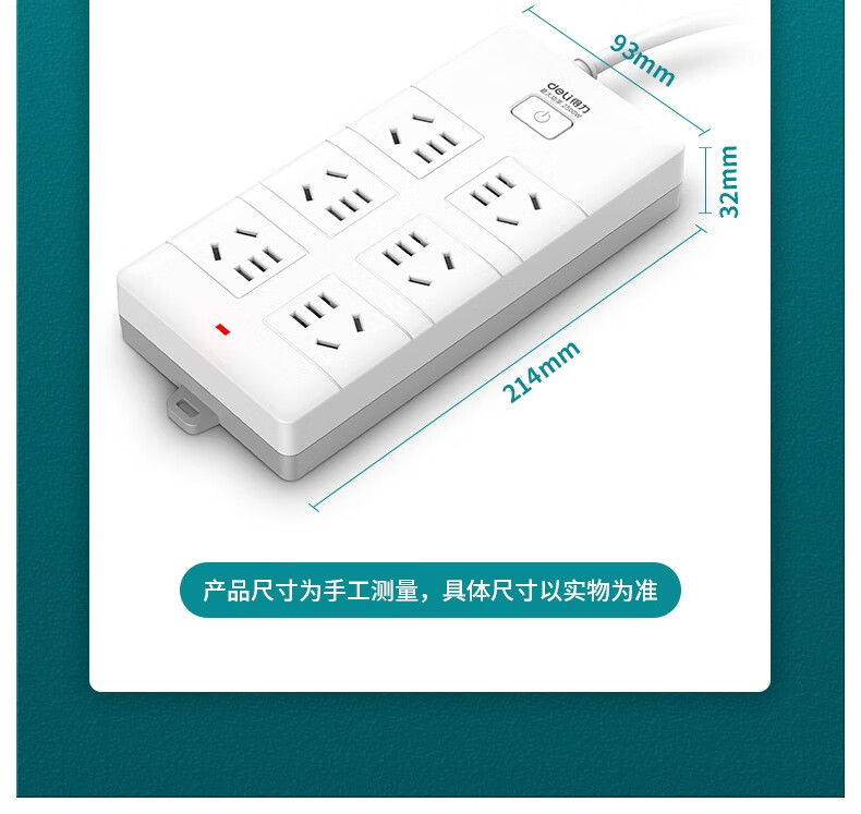 得力18168-03插座_6組_3米_PVC袋裝(白)