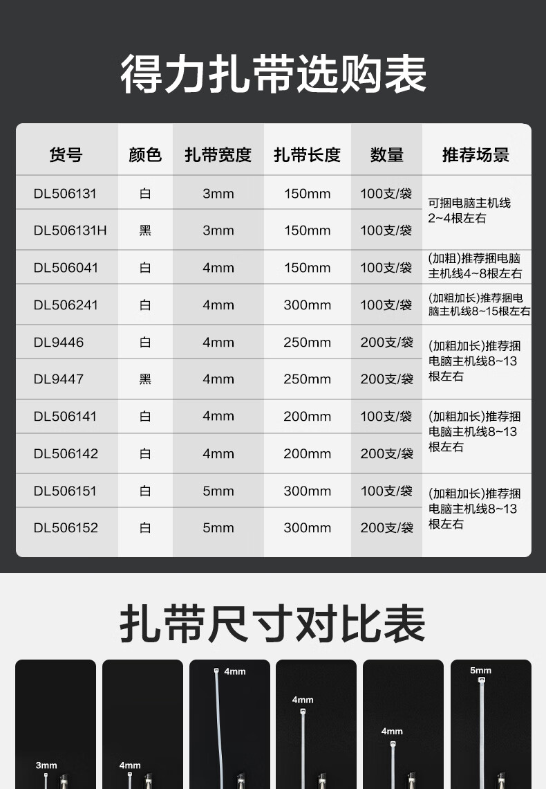 得力DL506151扎帶5x300mm (白)