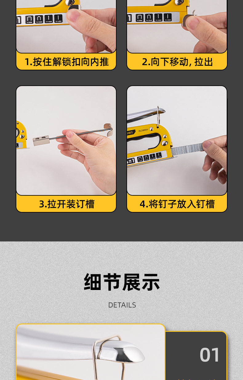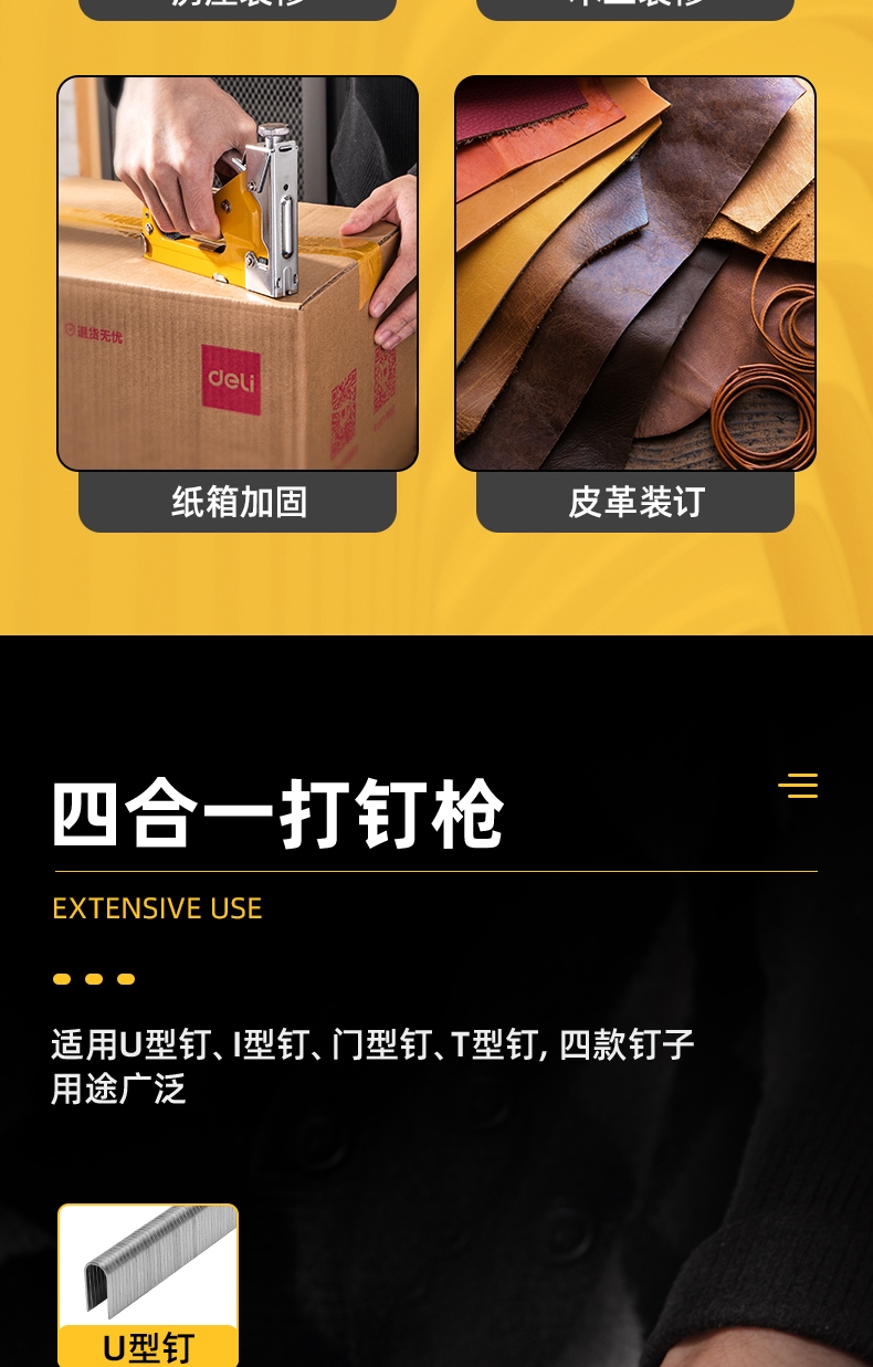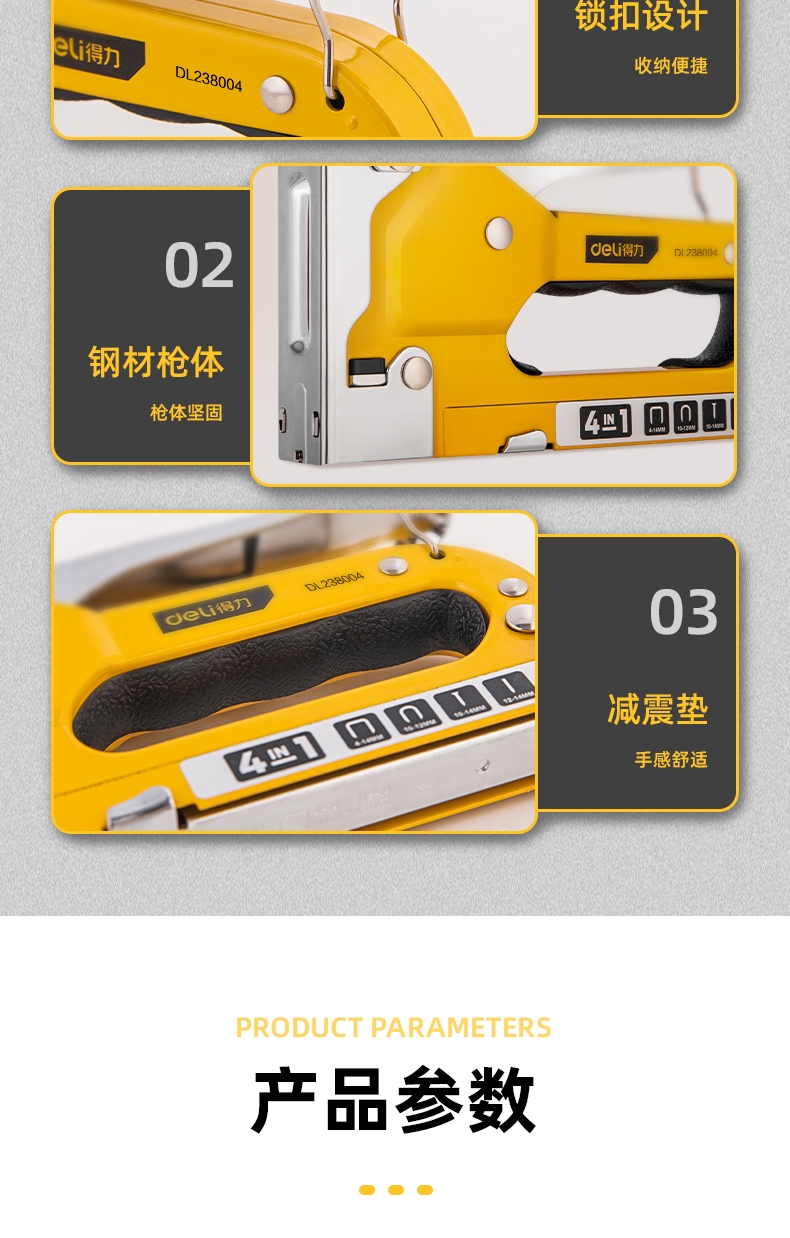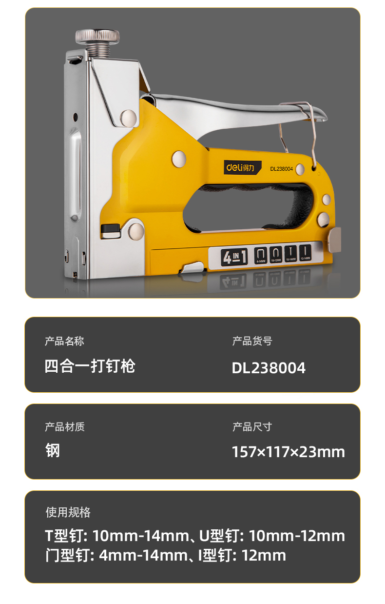 得力DL238004四合一打釘槍盒裝(黃)4合1