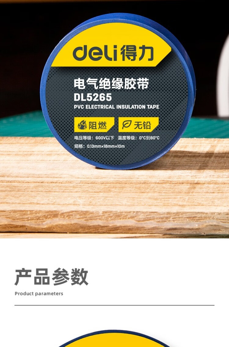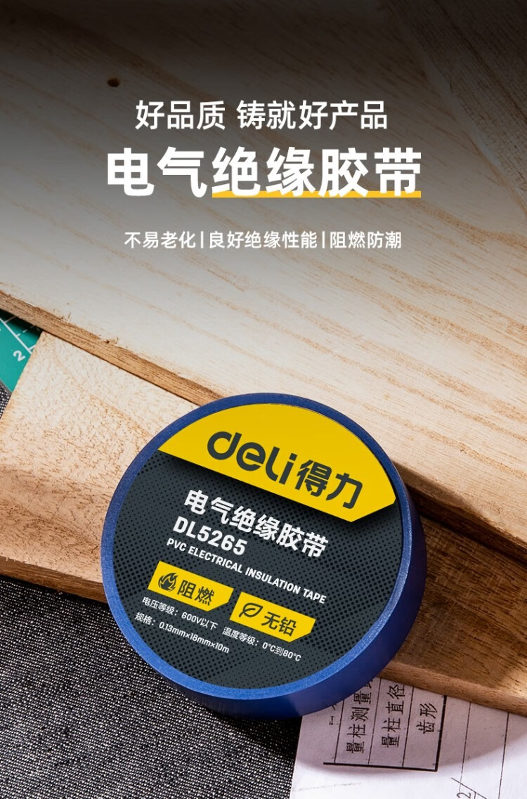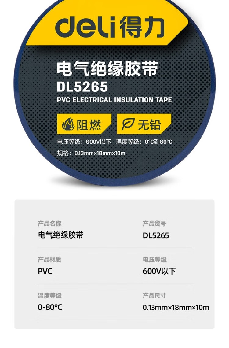 得力DL5265絕緣膠帶(藍)0.13mmx18mmx10m