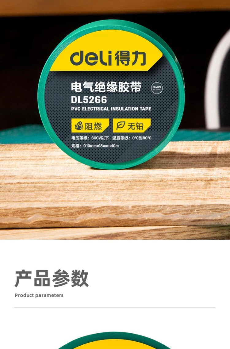 得力DL5266絕緣膠帶(綠)0.13mmx18mmx10m