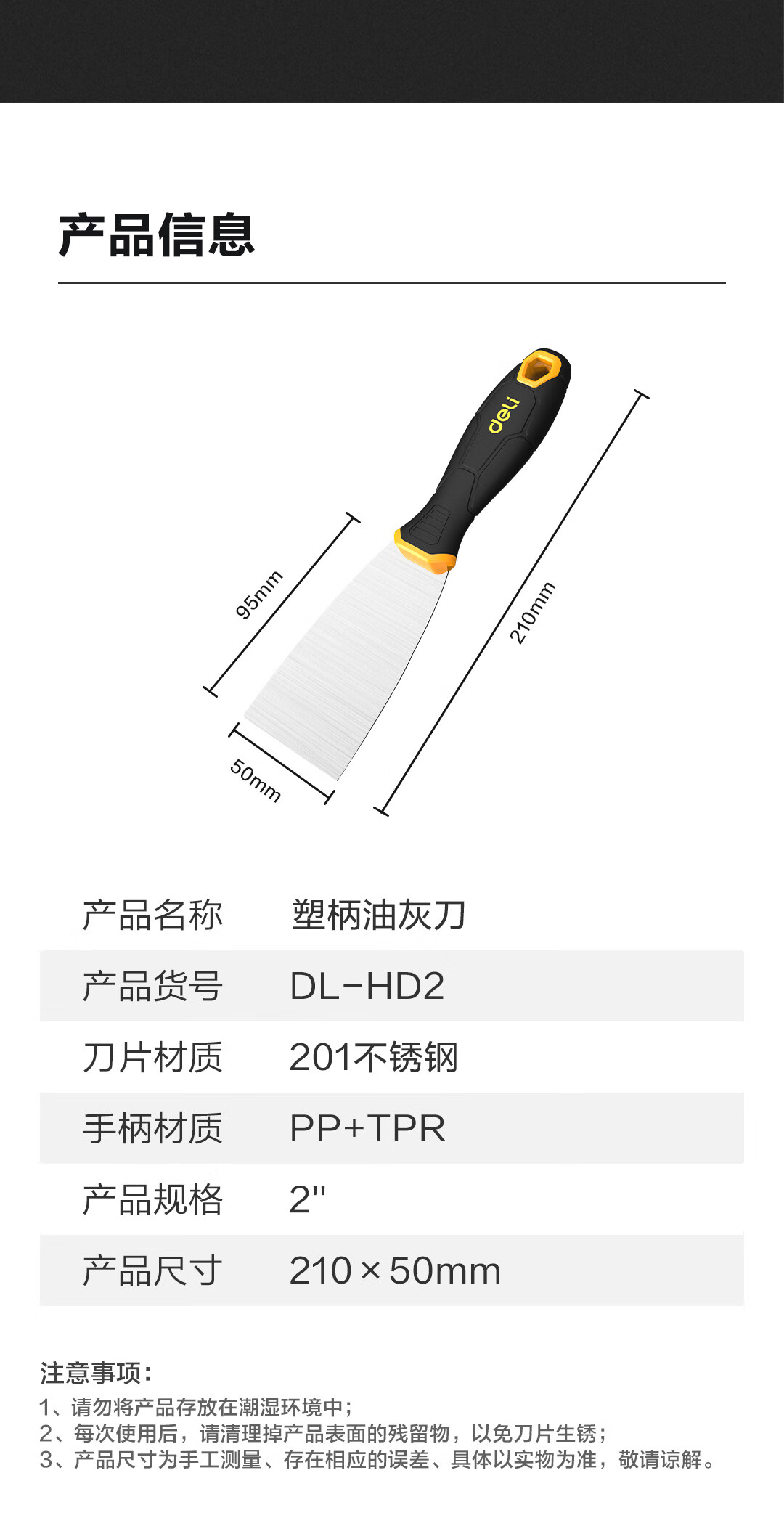 得力DL-HD2塑柄油灰刀(黃)2寸