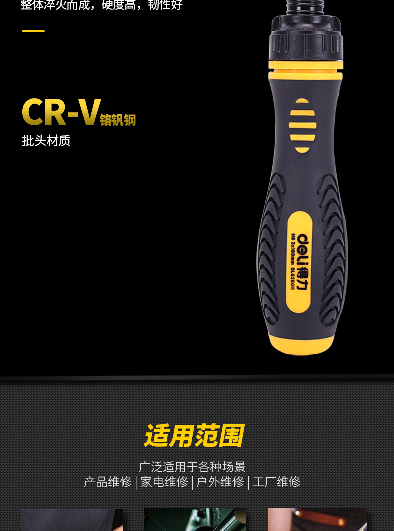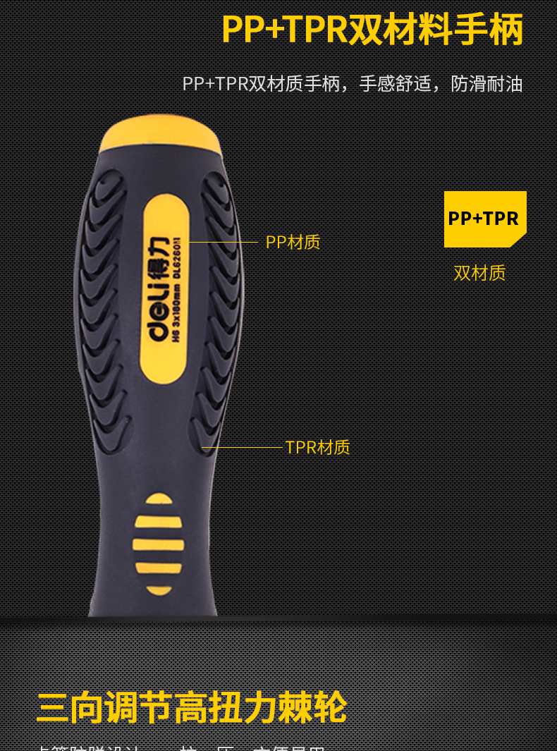 得力DL626011兩用棘輪螺絲批鉻釩鋼(黃)6/PH2x180mm