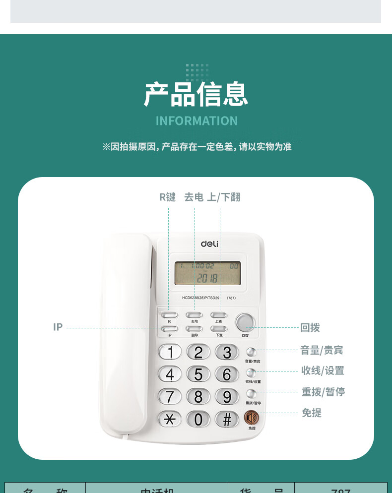 得力787電話機(白)