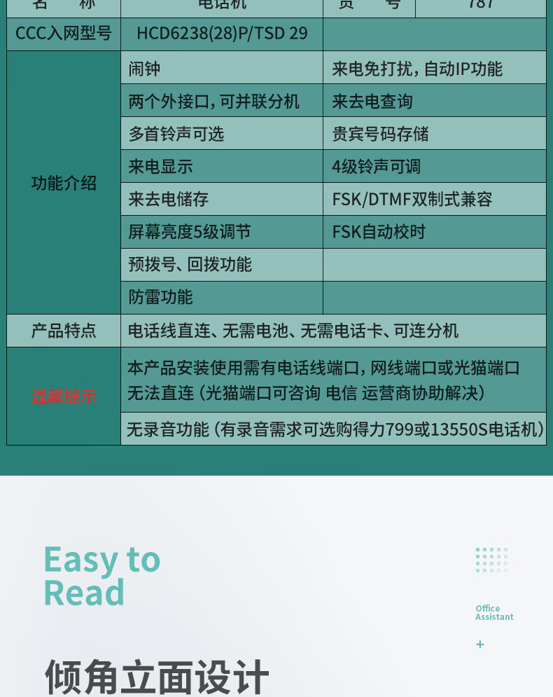 得力787電話機(黑)