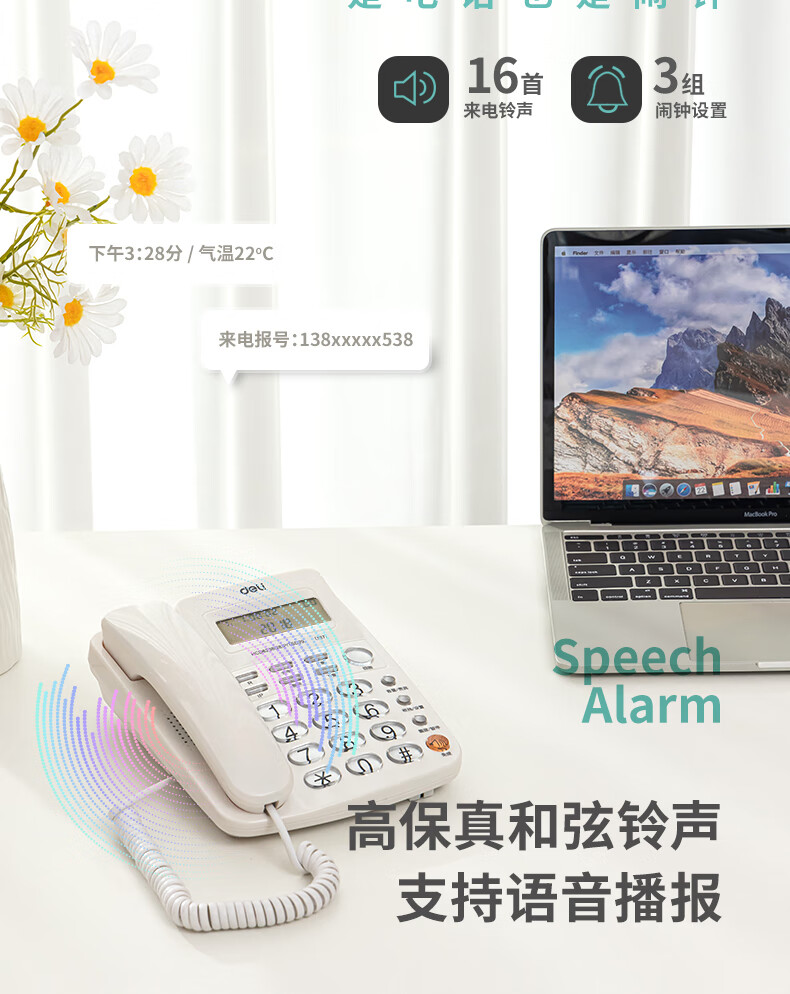 得力13606電話機(白)