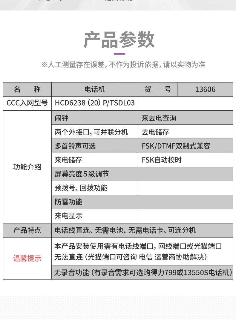適用類型 : 得力13606電話機(jī)(白)