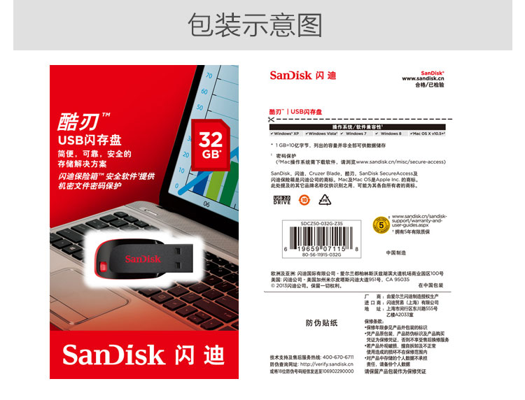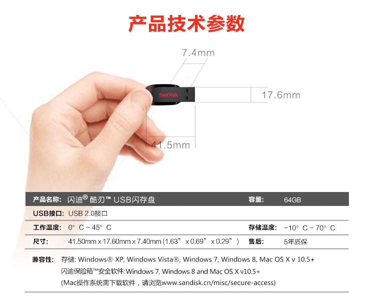 閃迪CZ50(酷刃)16G優(yōu)盤2.0
