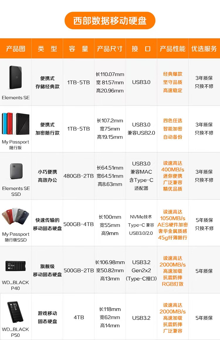 西部數據西數新元素移動硬盤4T
