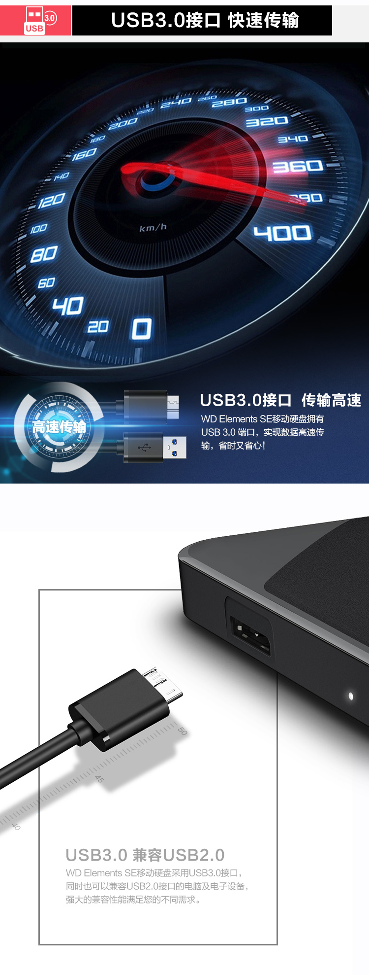 西部數據西數新元素移動硬盤2T