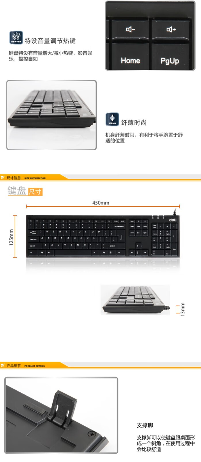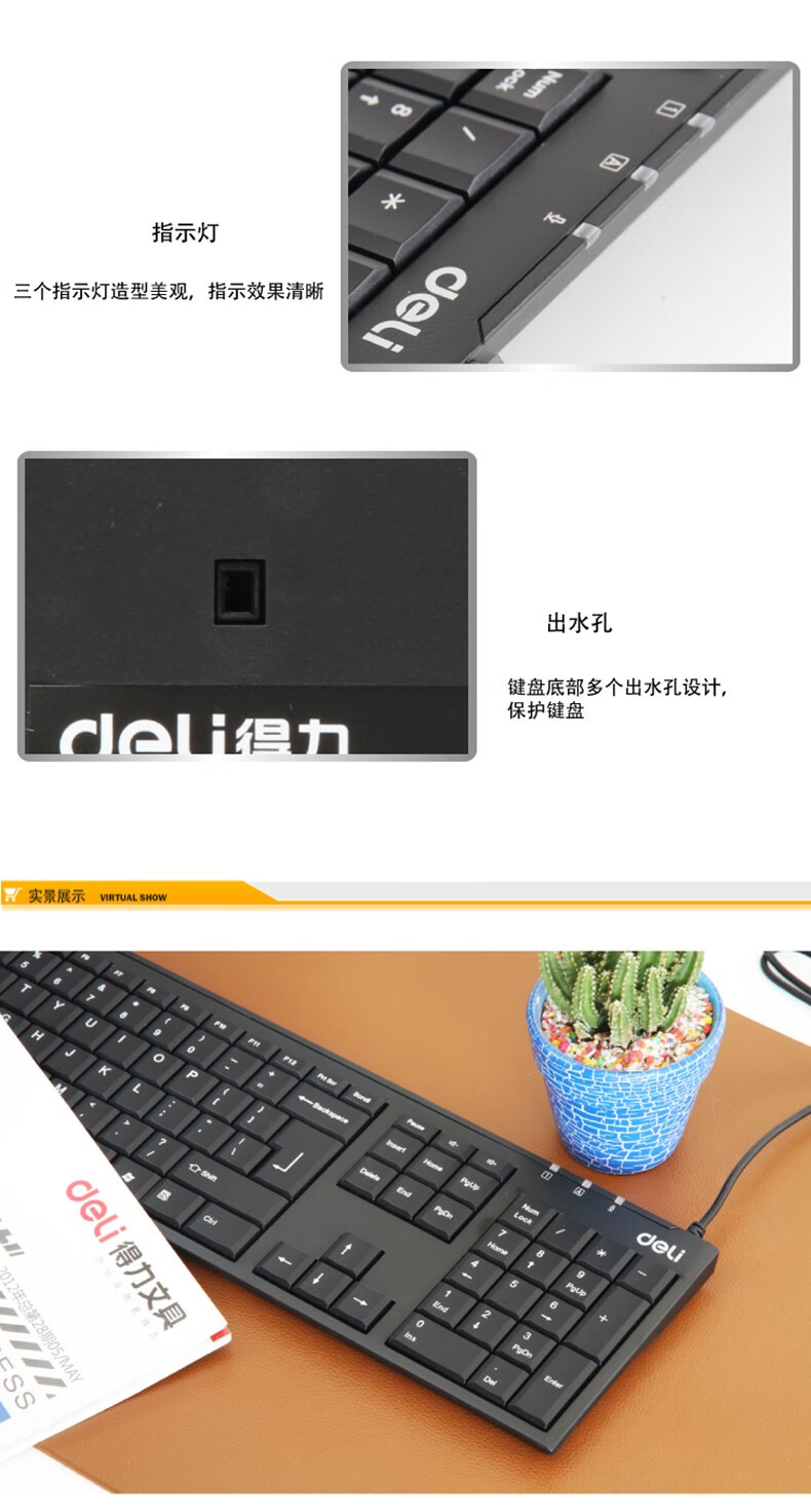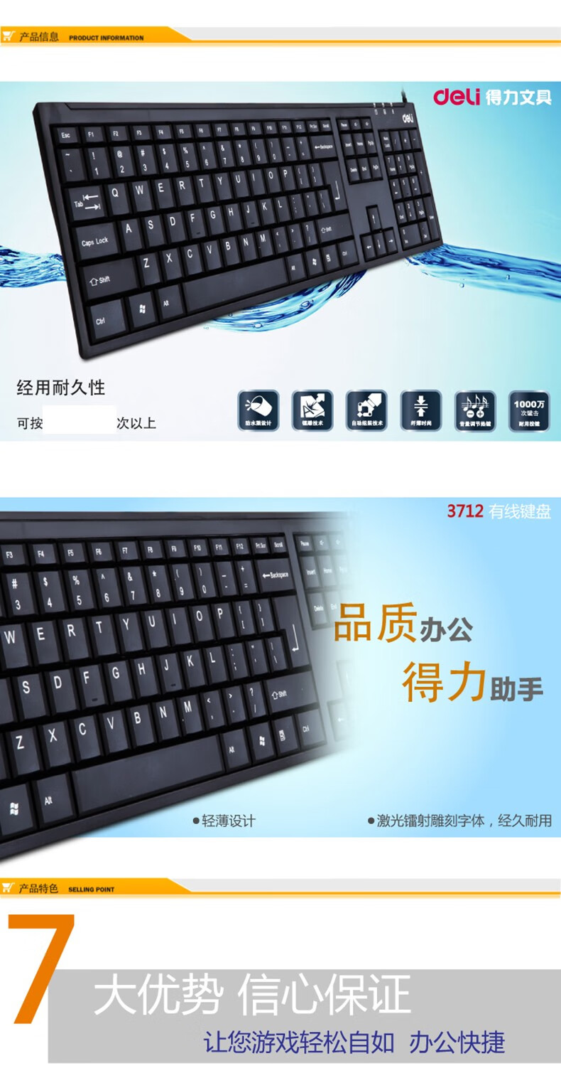 得力3712有線鍵盤黑*12