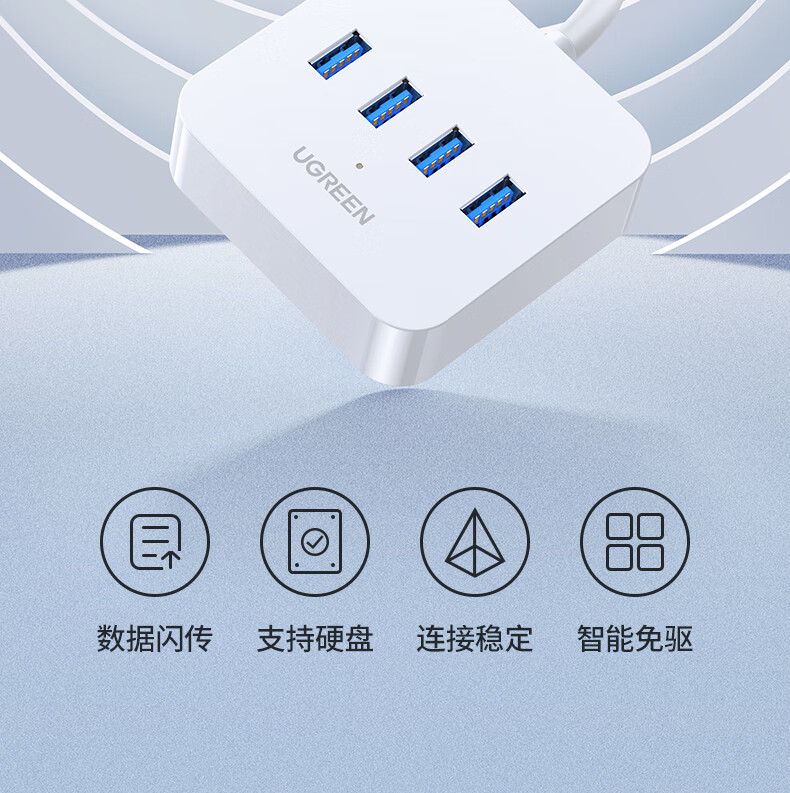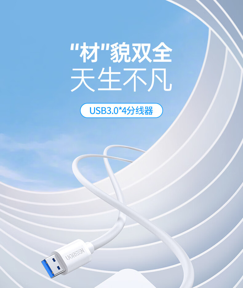 綠聯USB3.0分一拖四集線器延長線1.5米白 30221