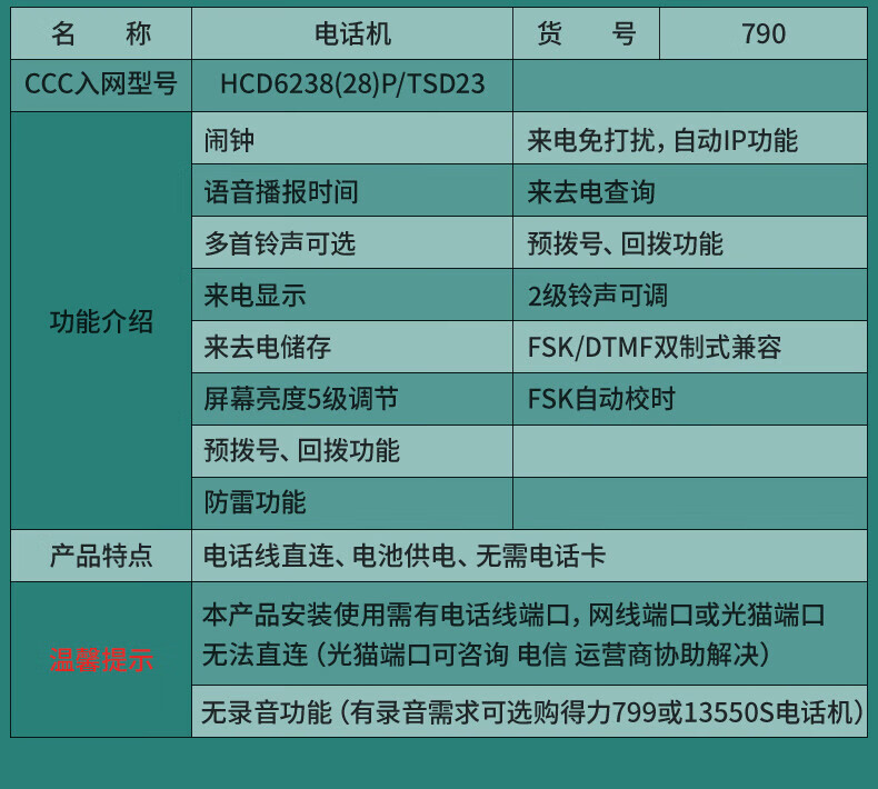 得力787電話機(紅)