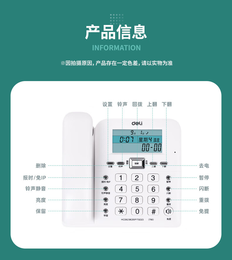 得力787電話機(白)