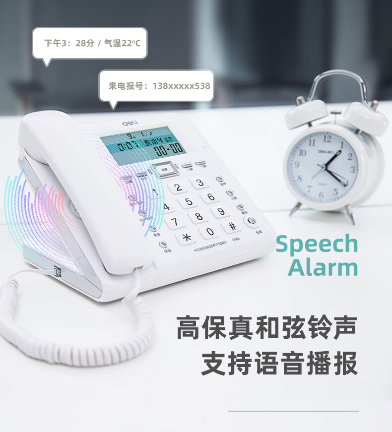 得力13606電話機(白)