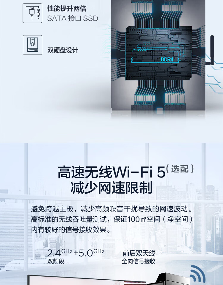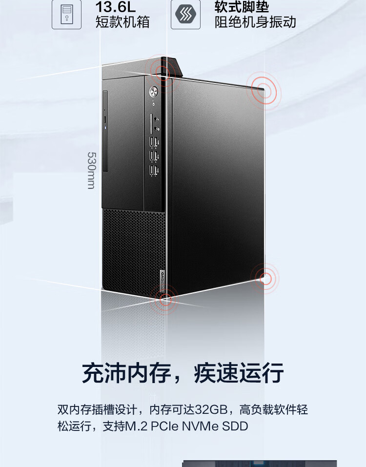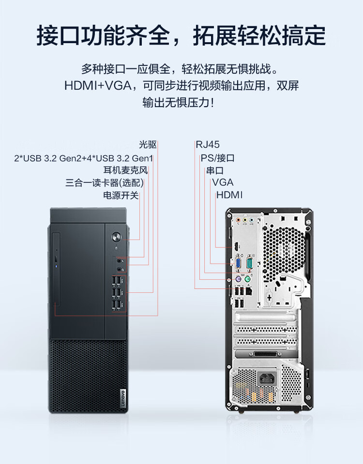 聯想啟天M43H臺式電腦(i5-10400 8GB+1TB+256G固態/無光驅/集顯/Win11/21.5英寸顯示器)