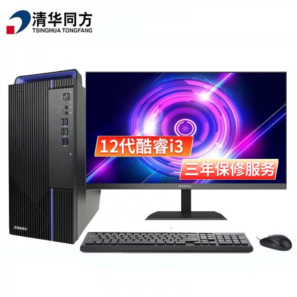 清華同方超越E500臺式電腦(I3-12100/8G/256GSSD/集顯/200W/WIN11家庭版/P15L/23.8寸顯示器)