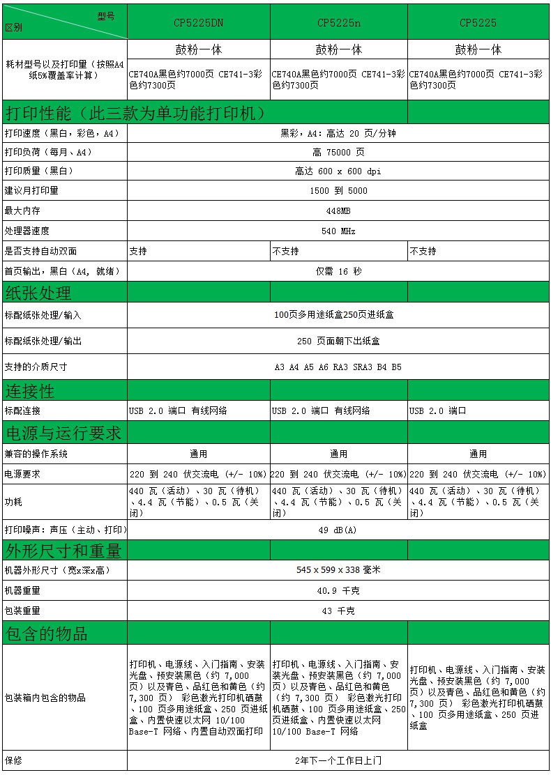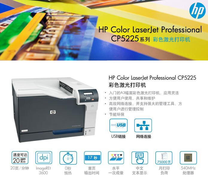 惠普CP5225DN彩色激光打印機A3