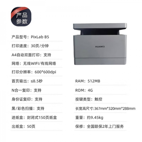 華為PixLab B5黑白激光多功能一體機(jī)(CV81Z-WDM)