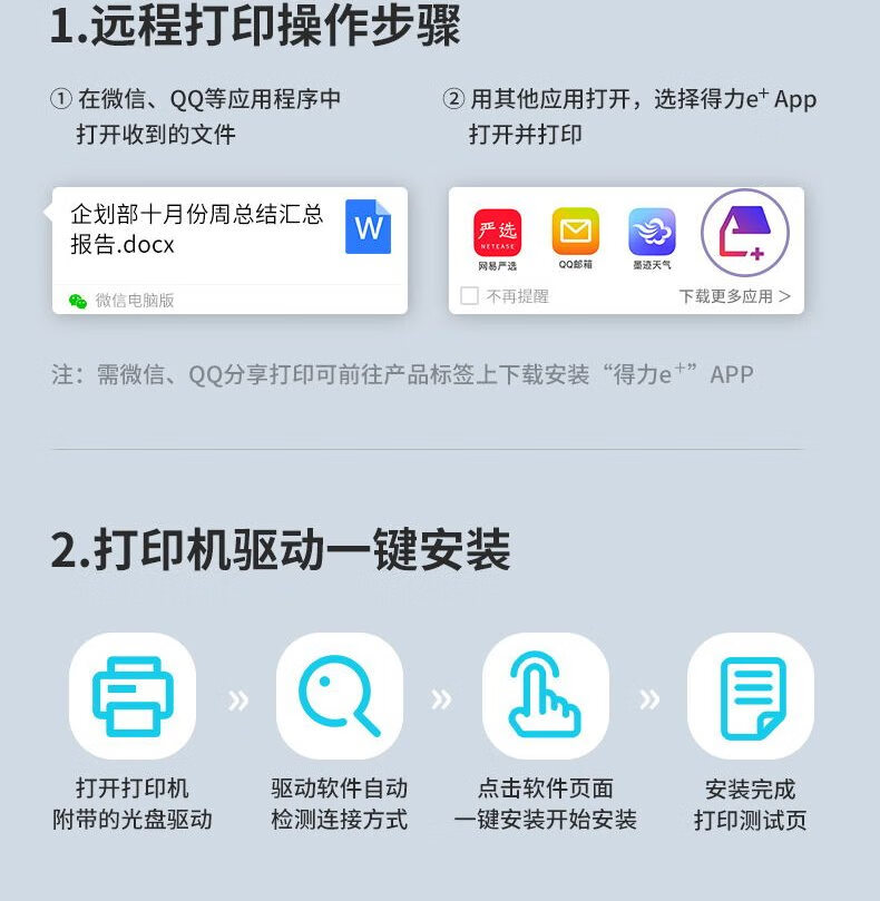 得力P2000NW黑白激光打印機 A4 云打印