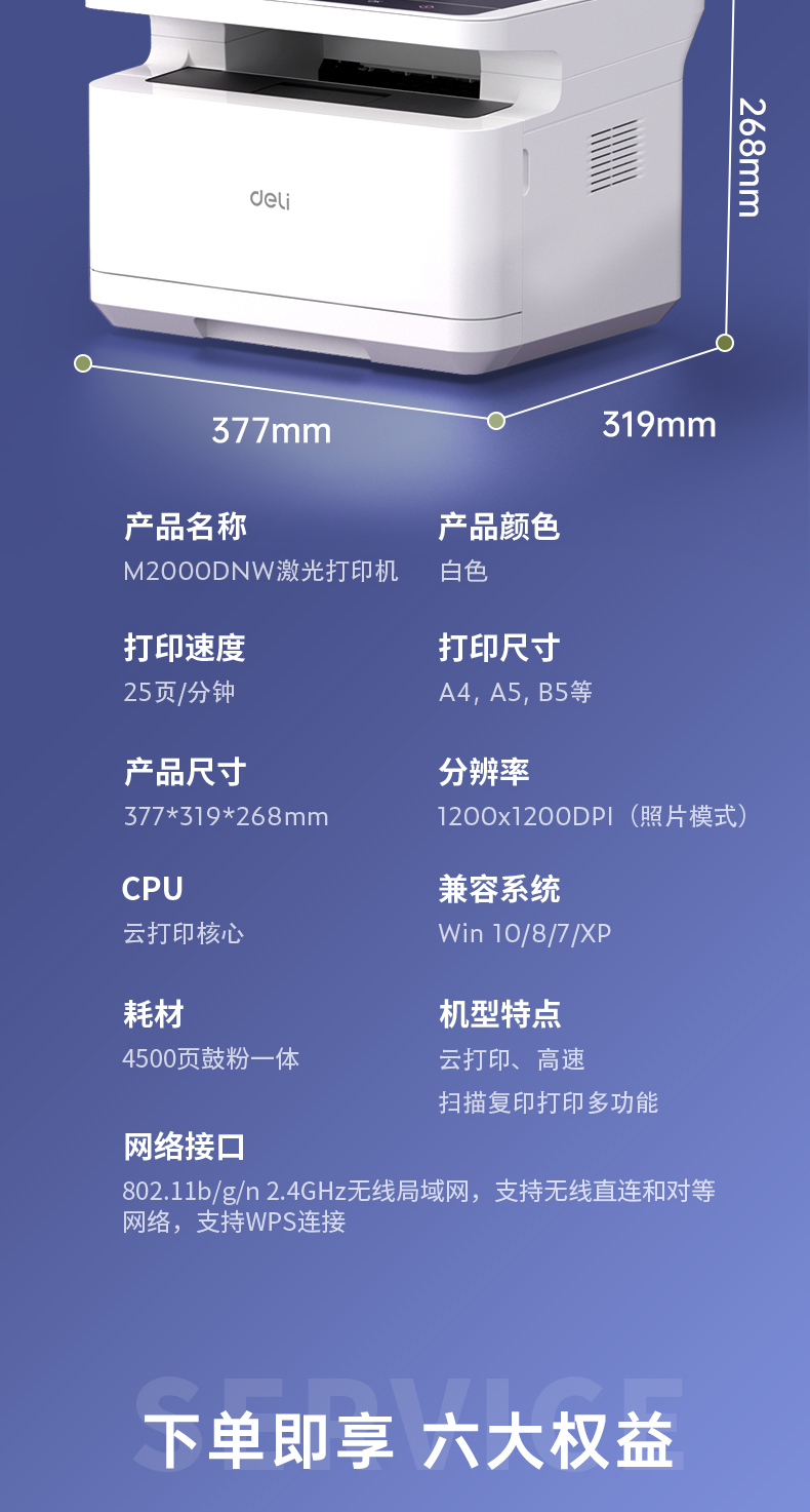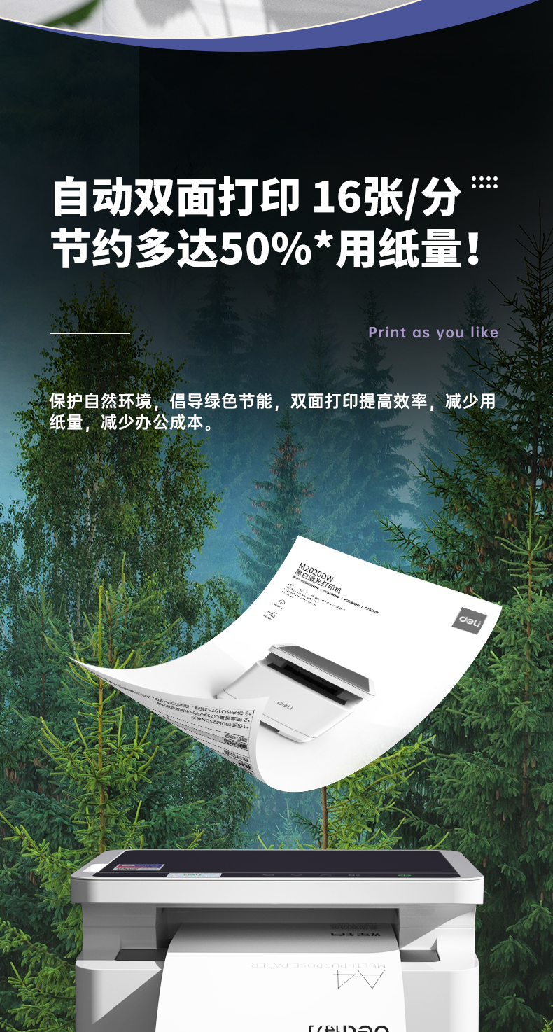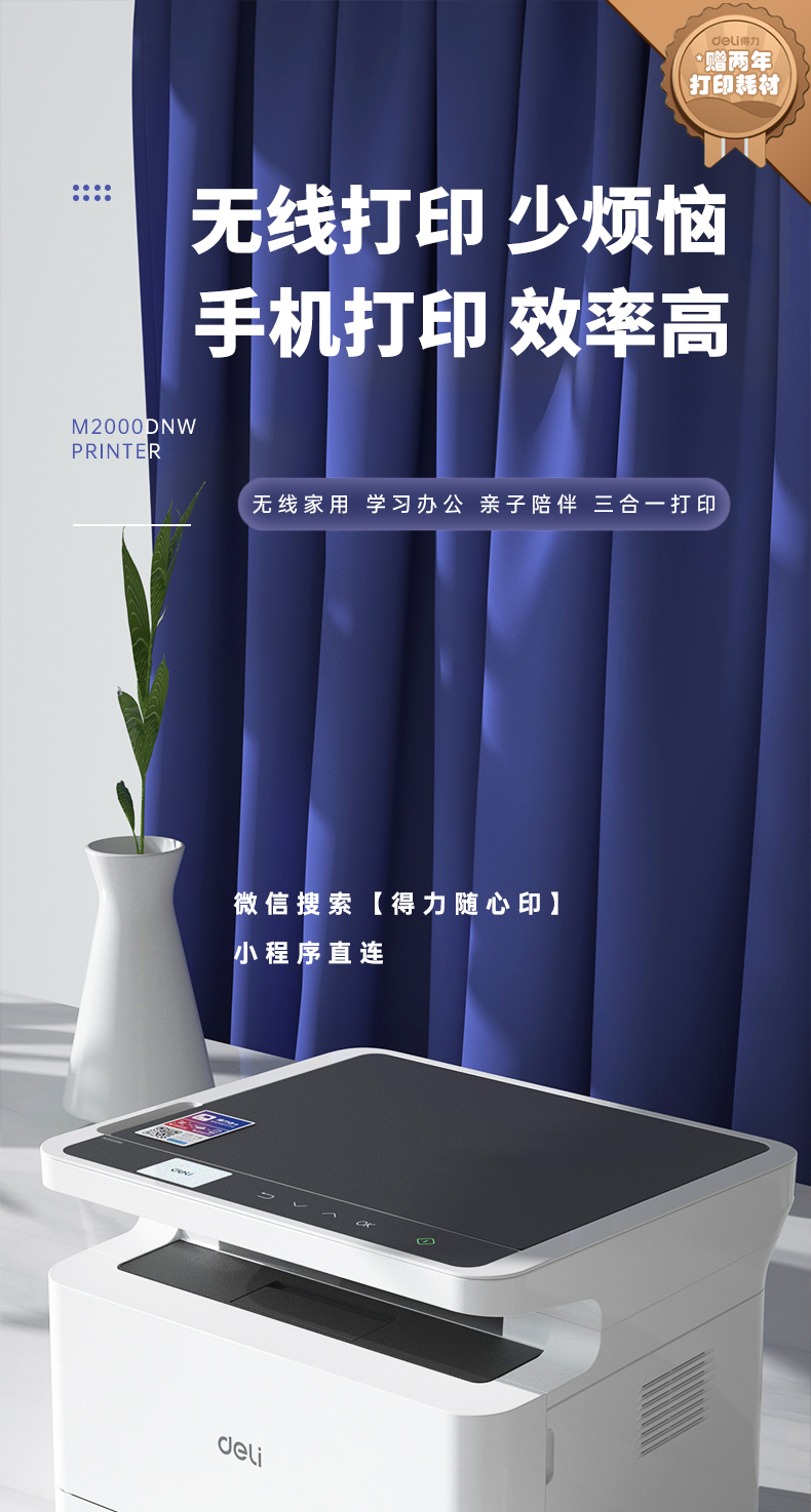 得力M2000DNW黑白激光多功能一體機 A4 自動雙面+云打印