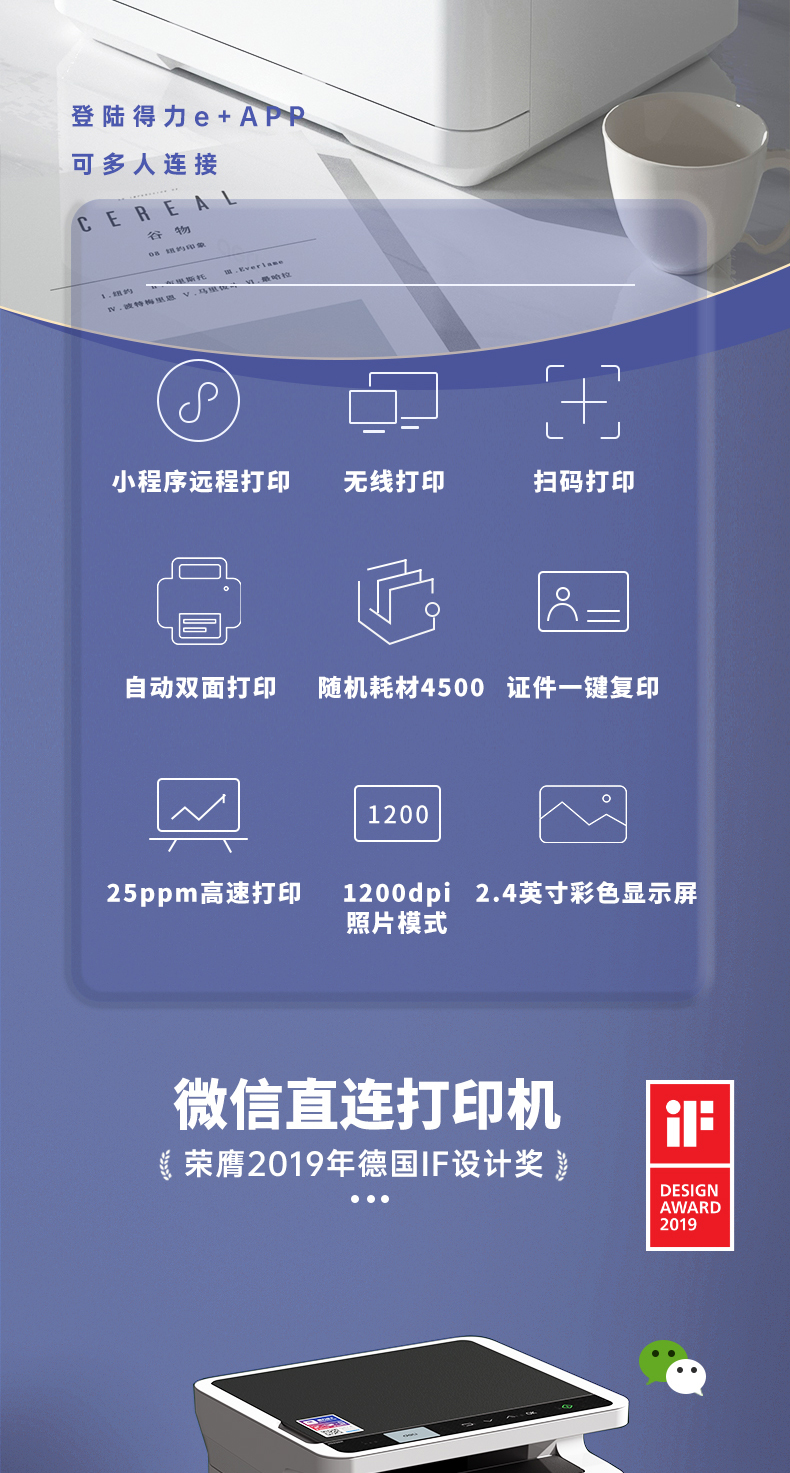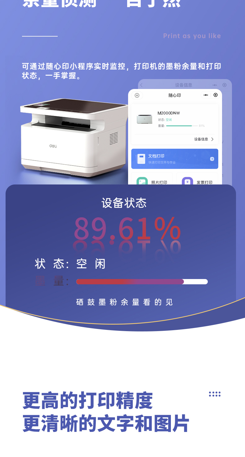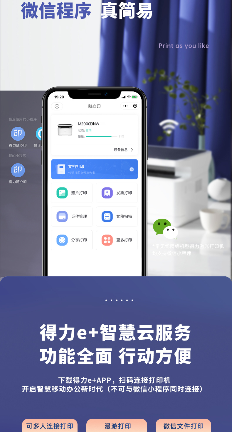 得力M2000DNW黑白激光多功能一體機 A4 自動雙面+云打印