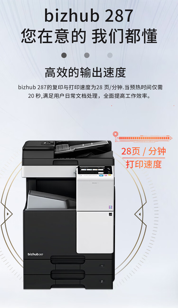柯尼卡美能達C286i彩色多功能復印機:28張、打印、復印、掃描、雙面器、雙面輸稿器、2紙盒、機柜