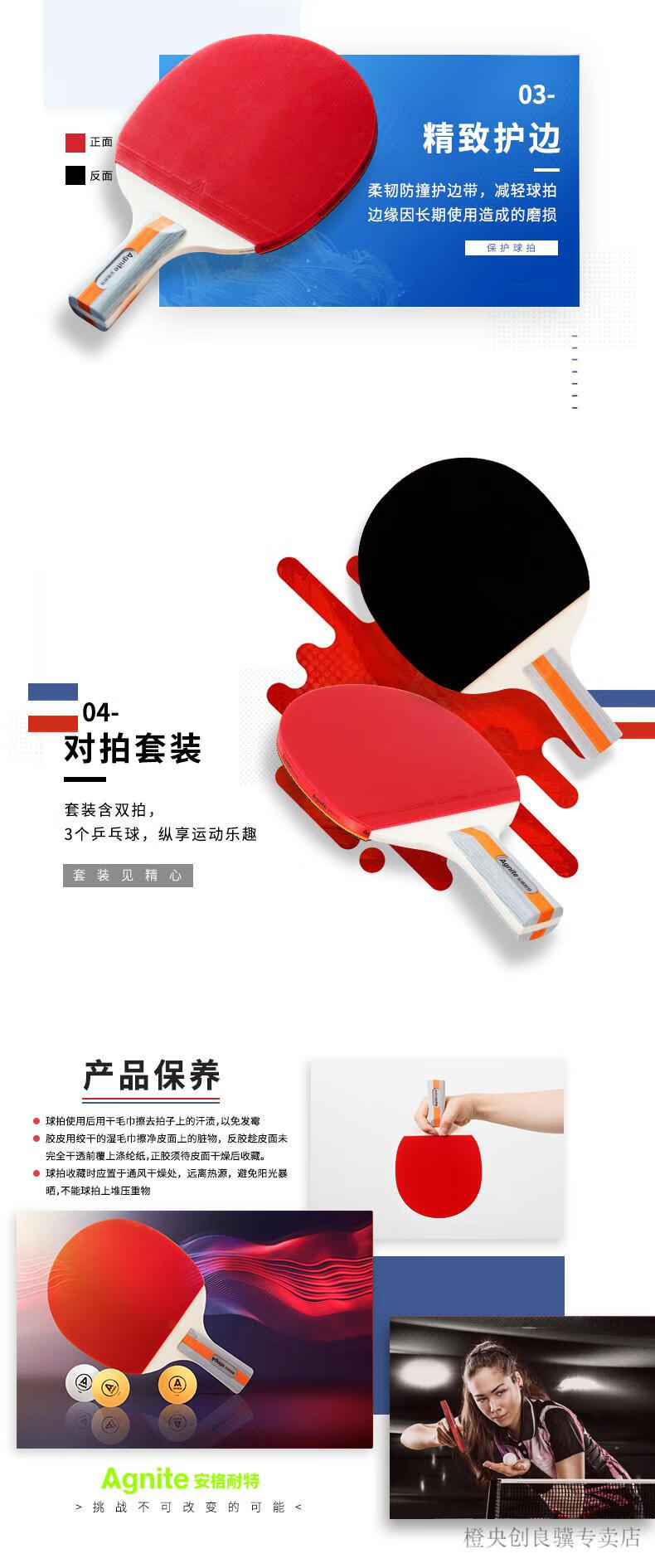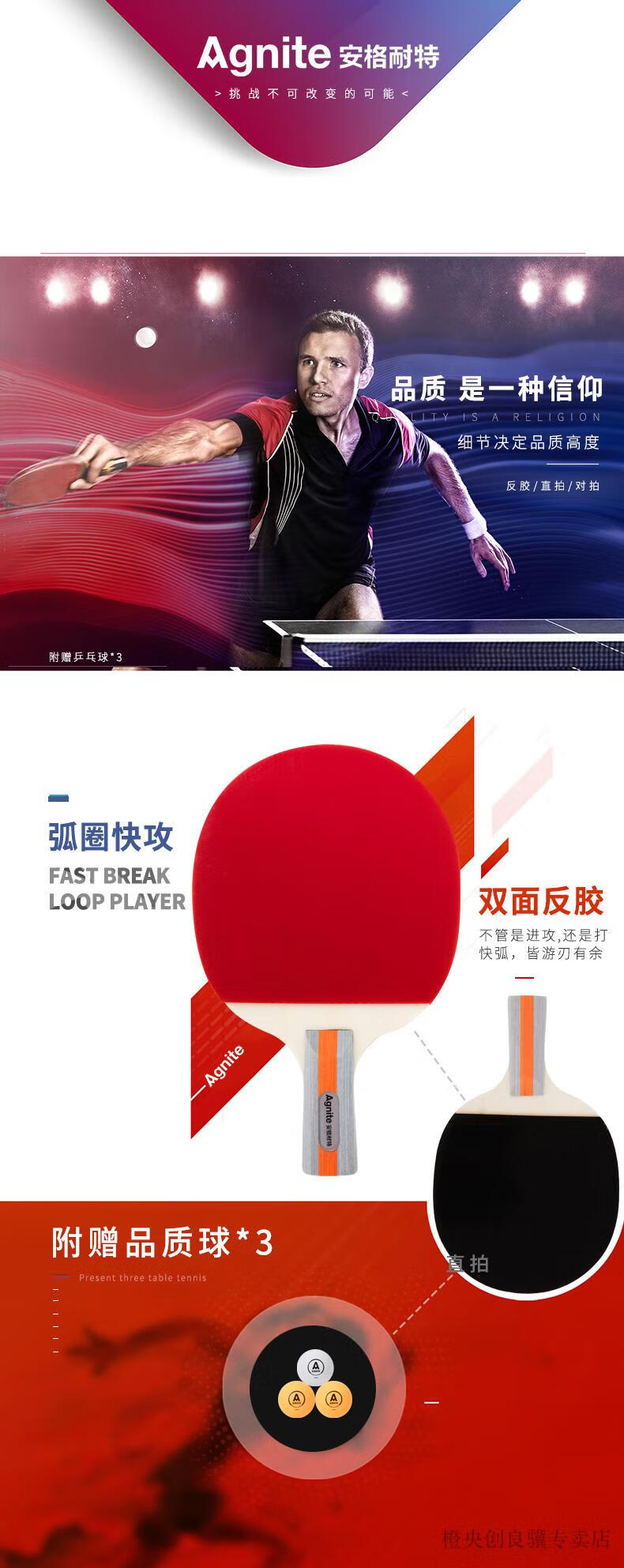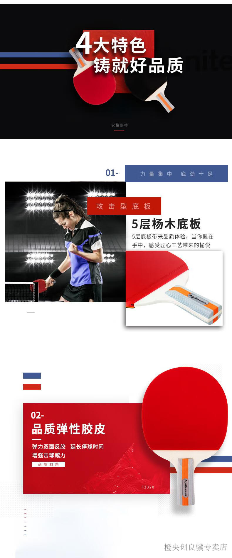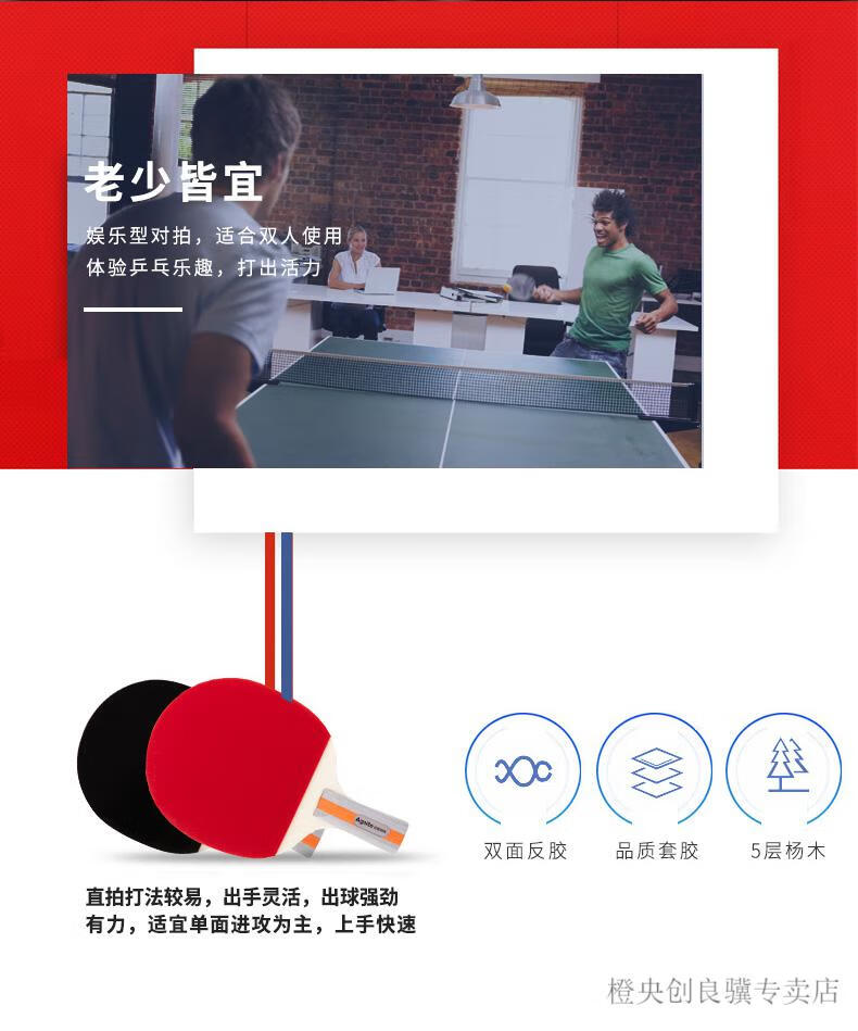 安格耐特F2330乒乓球拍(正紅反黑)(2個/副)