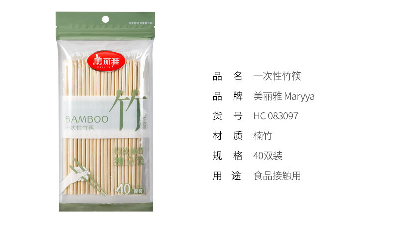 美麗雅HC083097一次性竹筷40雙入