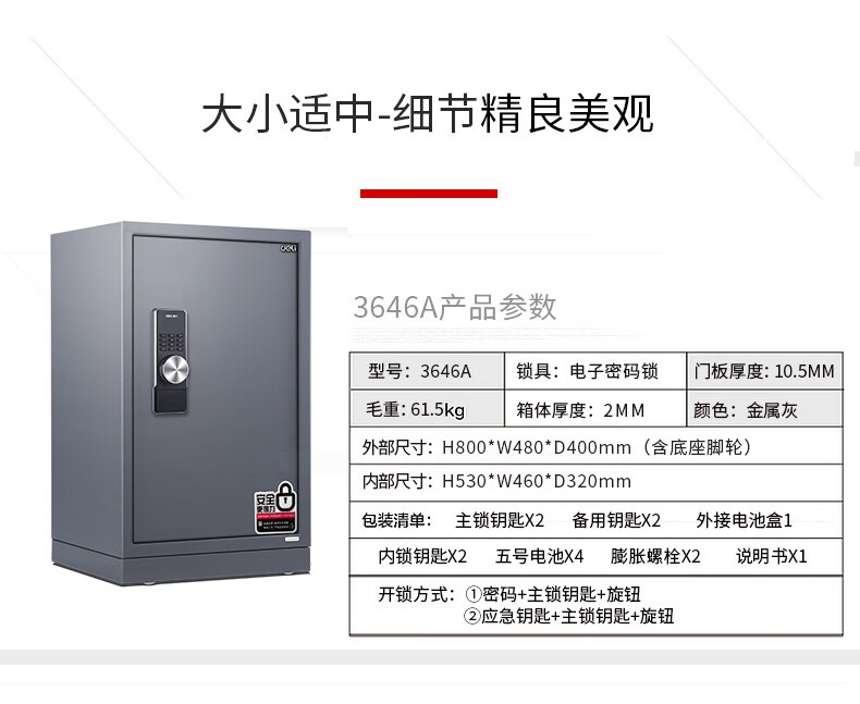 得力3646A電子密碼保管箱H795(淺灰)得力3646A電子密碼保管箱H795(淺灰)