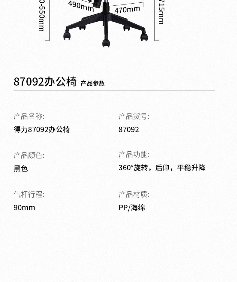 得力87092主管椅(黑)
