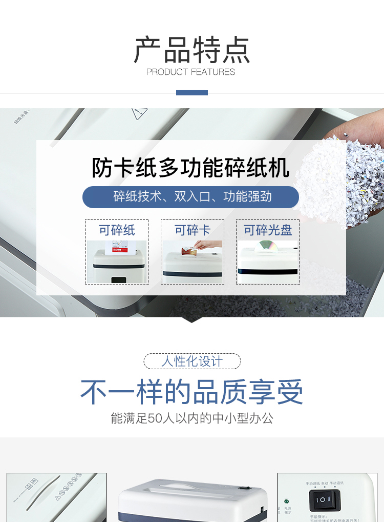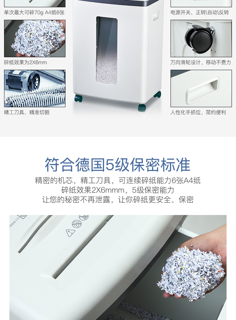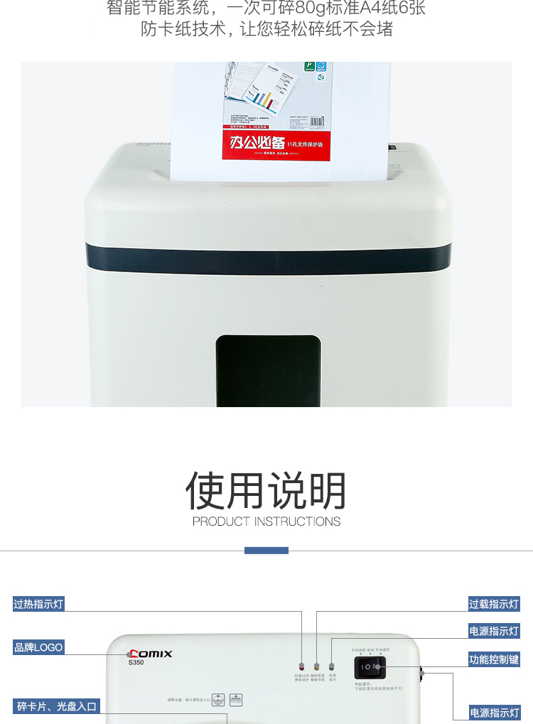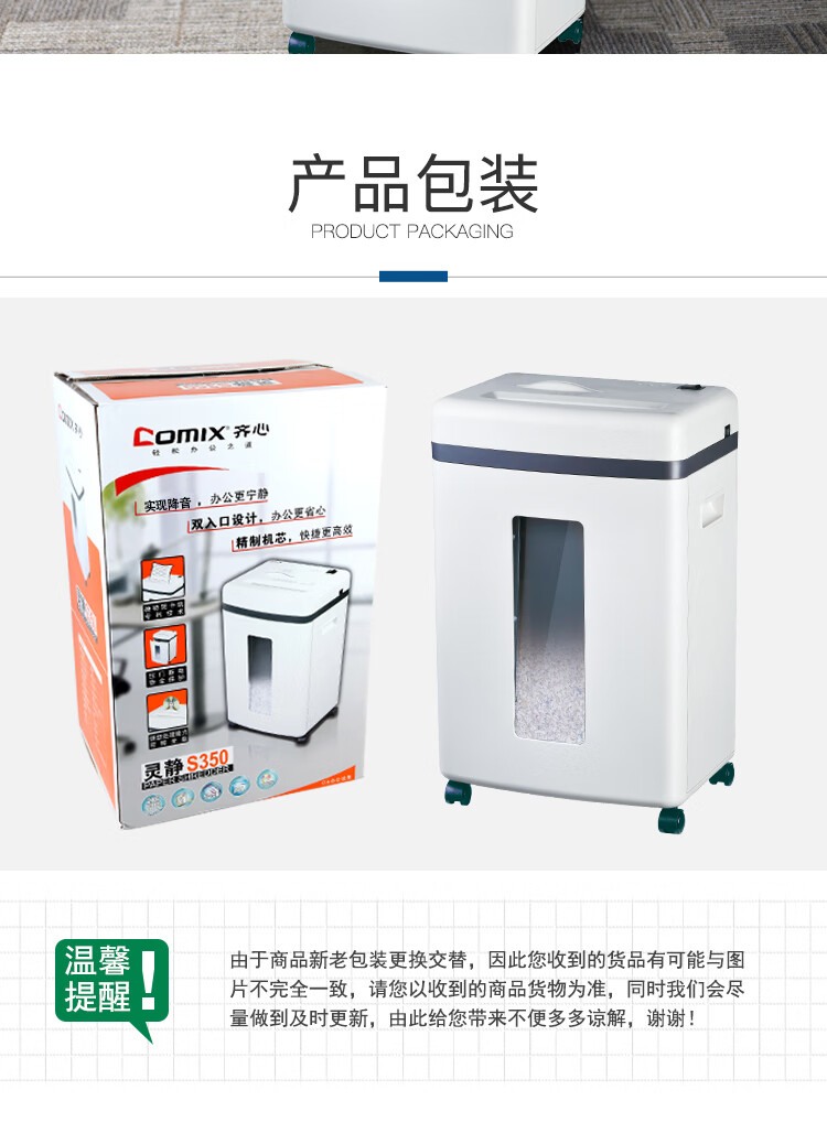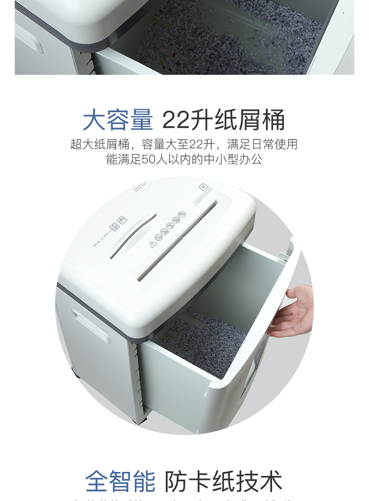 齊心S350防卡紙保密總監碎紙機22L